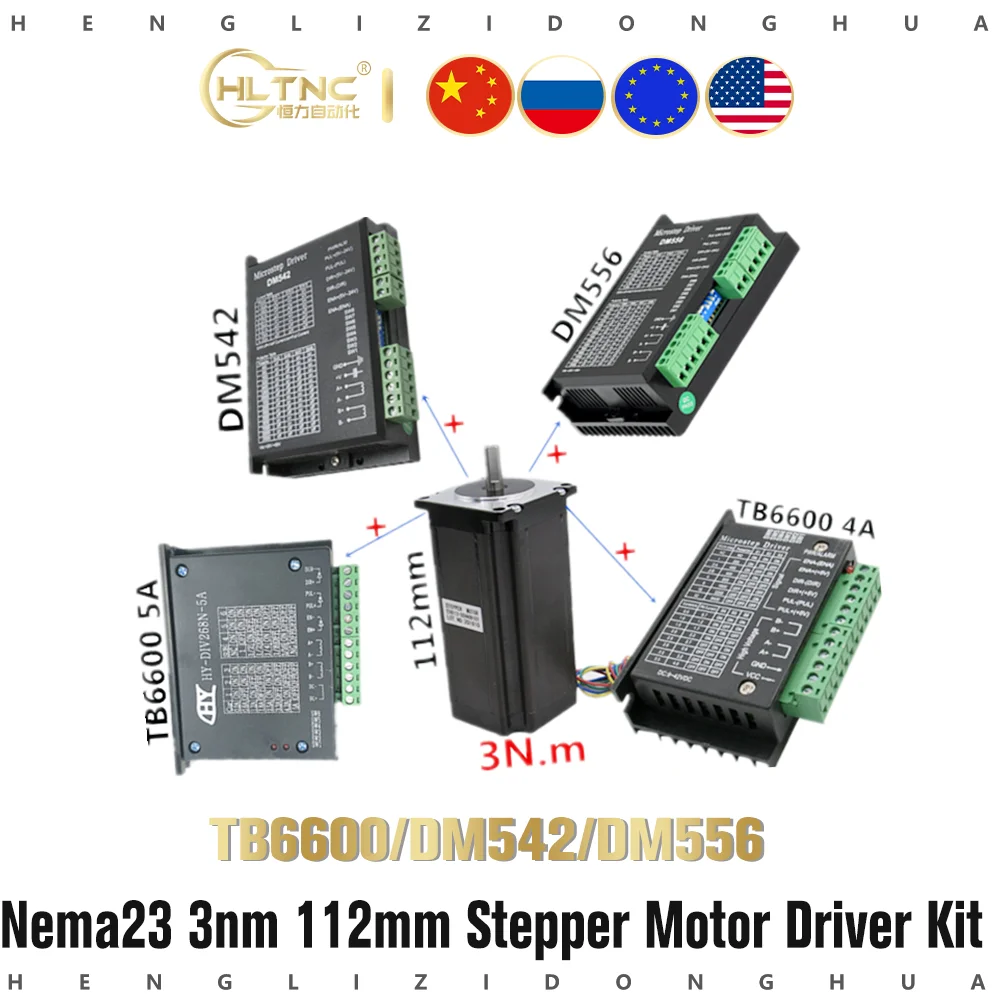 Гибридный шаговый Драйвер TB6600 DM542 DM556 с шаговым двигателем NEMA23, 57x112 мм, 4-проводной, 3 А, 3 Нм, 112 мм, 428Oz-in, NEMA 23 для ЧПУ