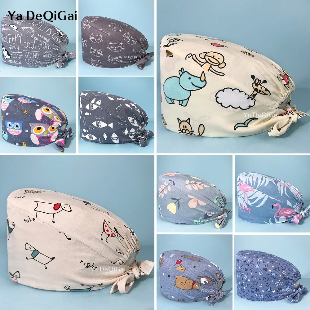 Разноцветные хлопковые Рабочие Шапки для зоомагазина, женские и мужские шапки-скрабы, эластичные скрабы, оптовая продажа, женские шапки, шапки-скрабы для ухода за домашними животными, унисекс