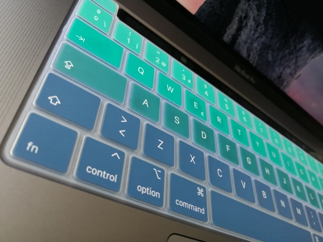Он выполняет свою задачу и закрывает клавиатуру, однако буквы не совсем совпадают с задними клавишами клавиатуры MacBook Pro