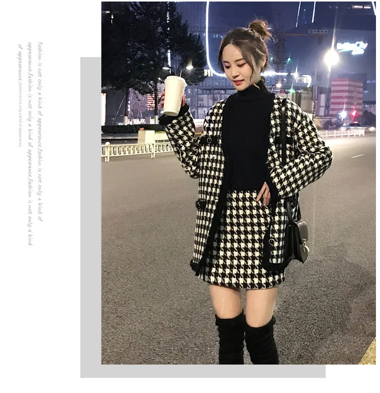Комплект из двух предметов Женский, винтажный кардиган с рисунком гусиные лапки и мини-юбка, элегантный осенний костюм