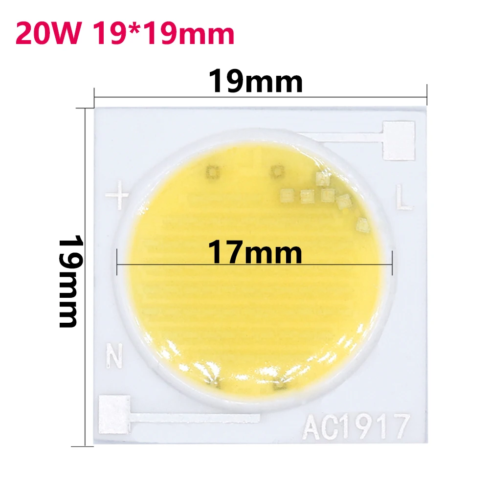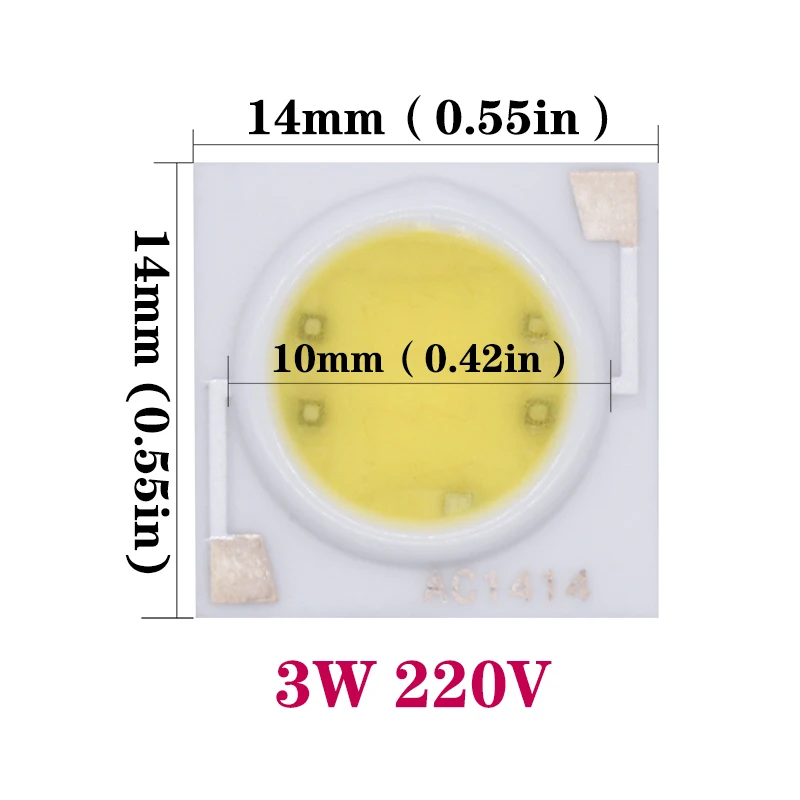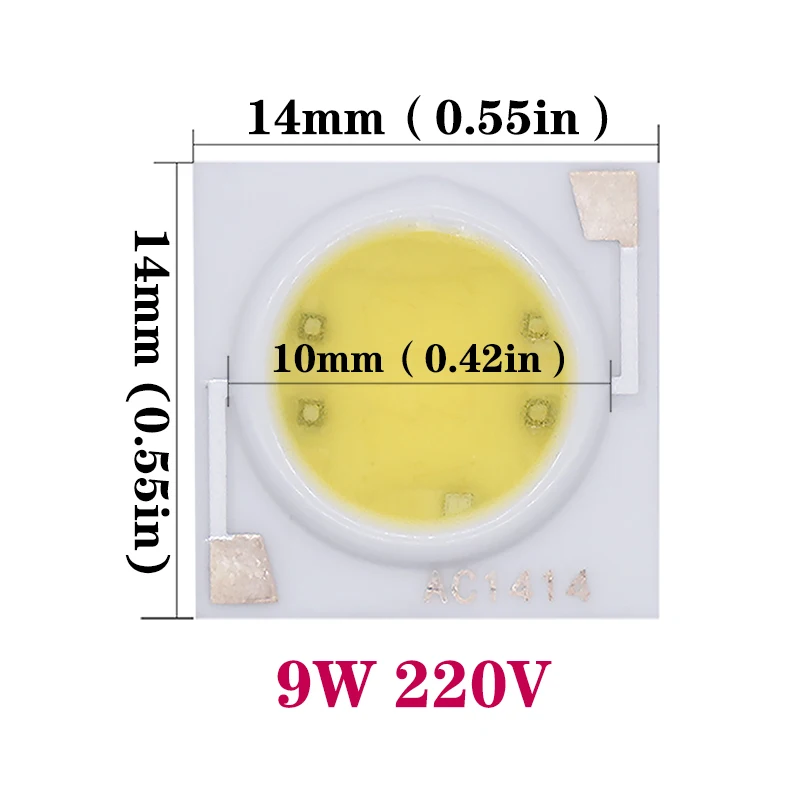 1. Мощность: 3 Вт/5 Вт/7 Вт/9 Вт/12 Вт/15 Вт/20 Вт/30 Вт/50 Вт2. Valtage : AC220V3. Цветовая температура: холодный белый 6000-6500 к; Теплый белый 2800-3200 к4. Индекс цветопередачи: Ra805. Угол луча: 120 градусов7. Срок службы: более 10 000 часов8. 3 Вт/5 Вт/7 Вт/9 Вт Размер: 14*14 мм9. 12 Вт/15 Вт/20 Вт/30 Вт/50 Вт Размер: 19*19 мм10. Люмен: 100 лм/Вт11. Материал: Керамическая подложка12. Теплопроводность керамической подложки: 20 Вт/м-k13. Тепловыделение: не нужен драйвер, но нужен радиатор14. Температура сварки: 250-300 ℃, не более 3 секунд, угол сварки 25 °.Материал корпуса: алюминийN = ПоложительныйL = минус
