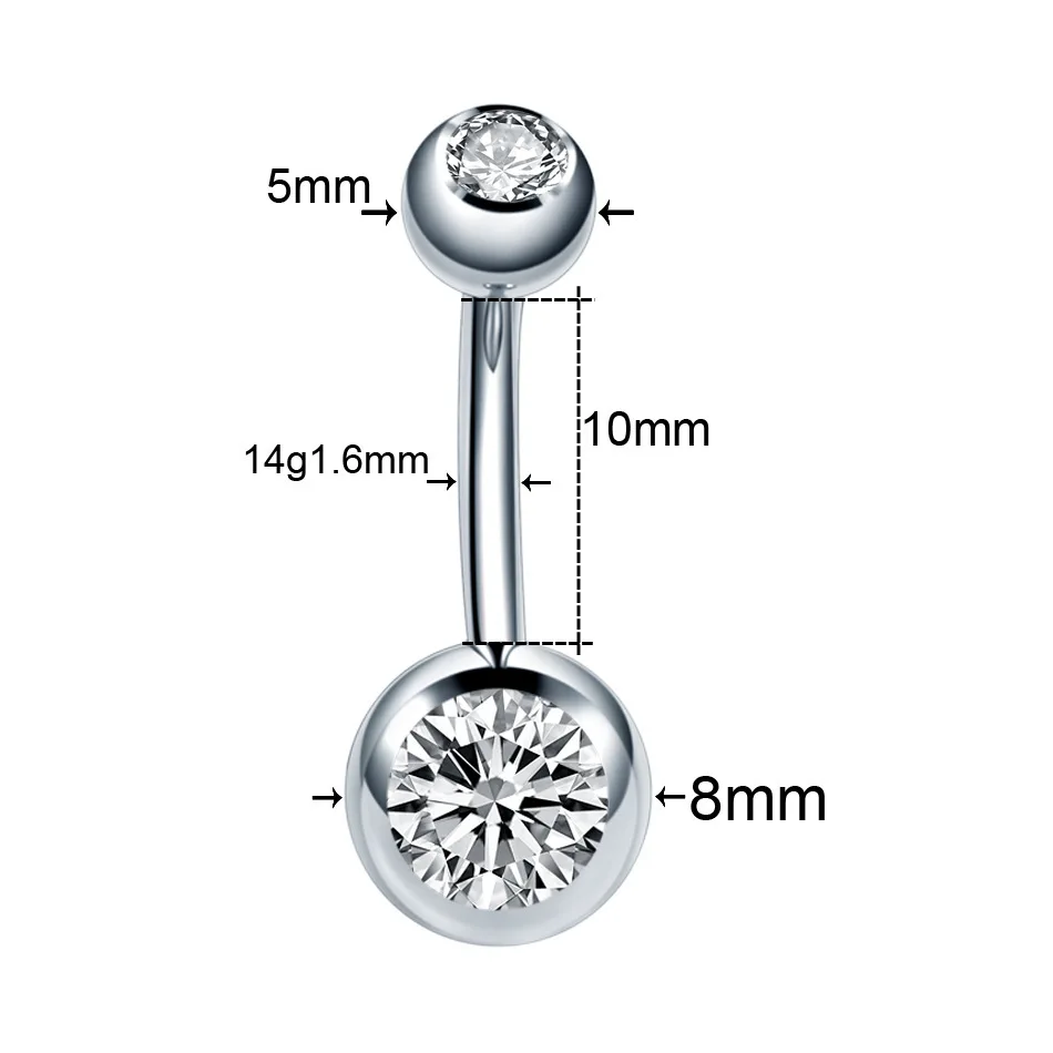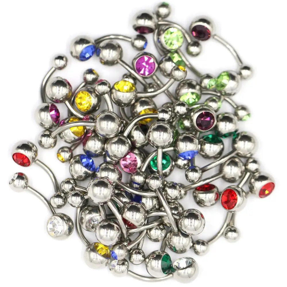 Кольцо для пирсинга пупка из хирургической стали со стразами, 5101520 шт.лот
