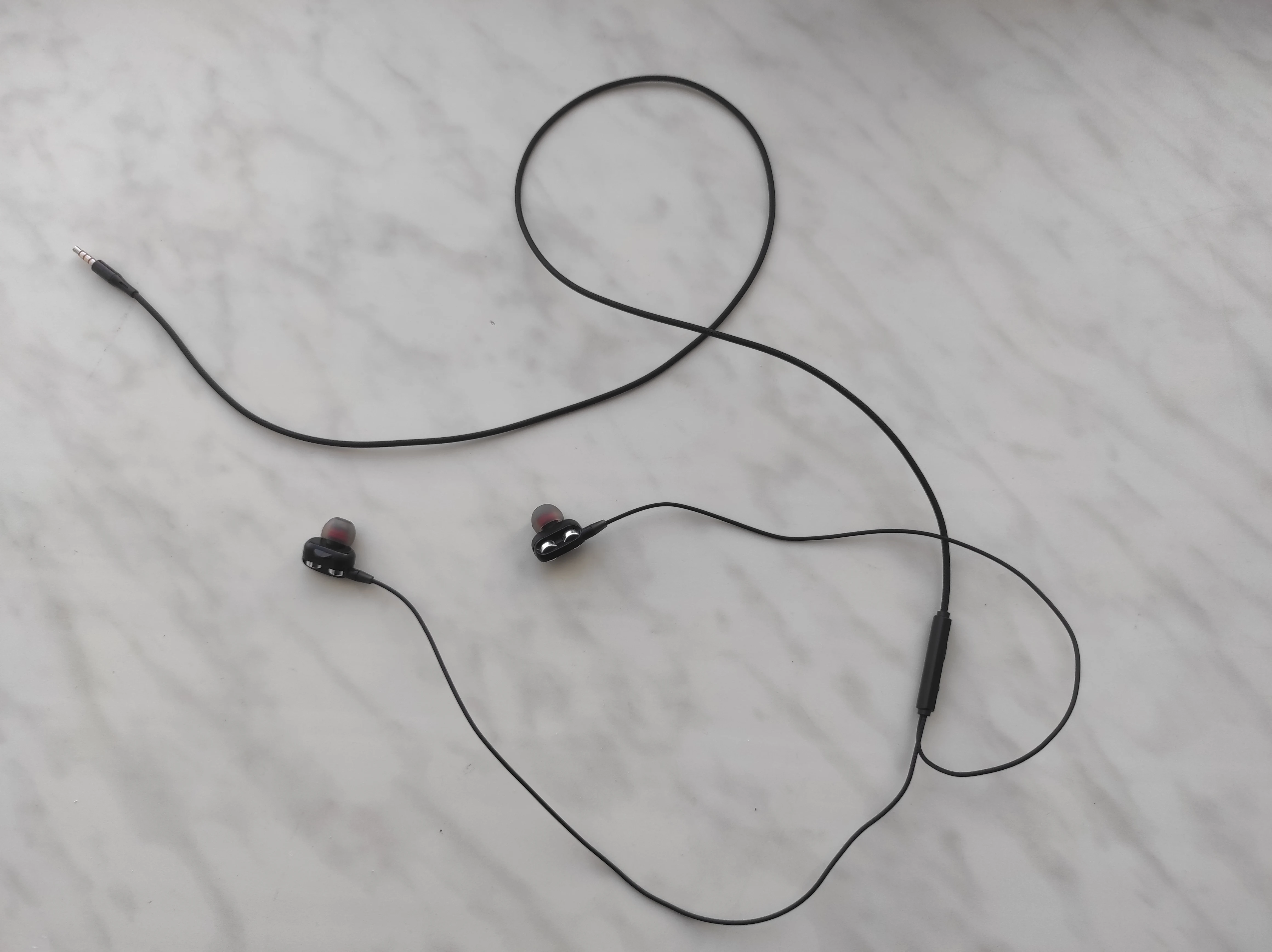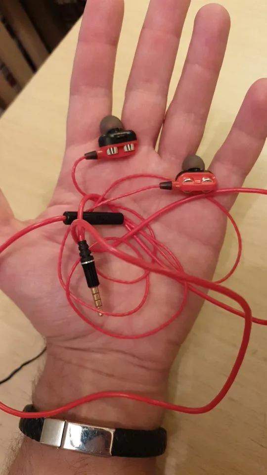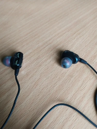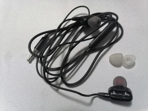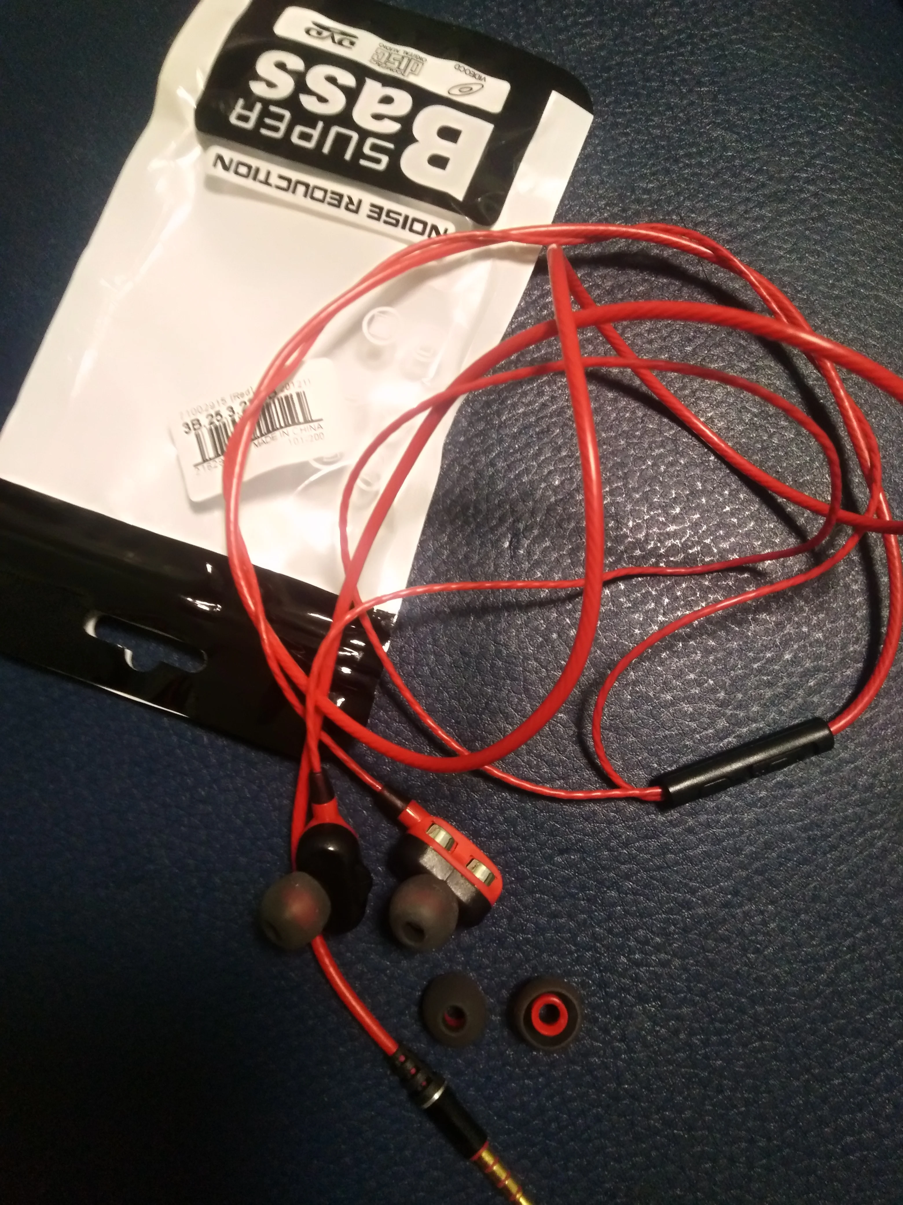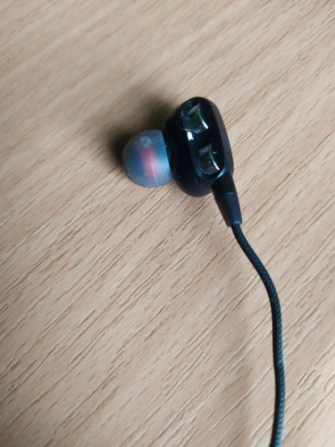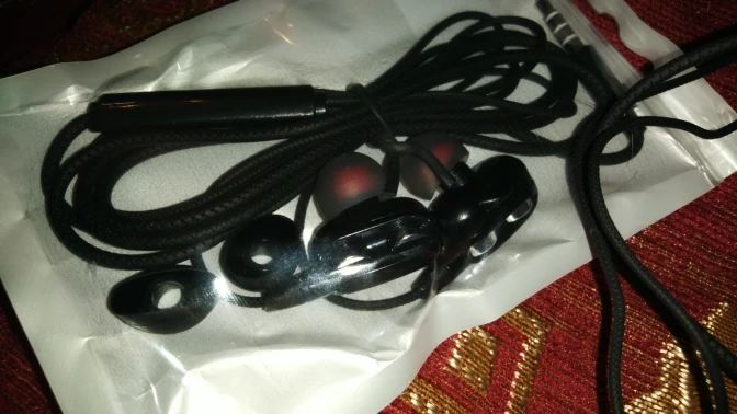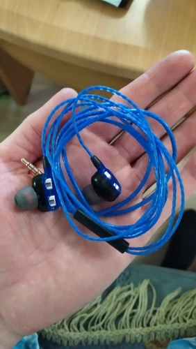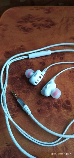 Наушники, в точности как в описании. Радует наличие запасных амбушюр и пульт управления. Прорезиненный провод тоже в плюс. Ну а качество звучания... Ну никаких супер басов и близко нет. Звучание как из консервной банки. Обычные вкладыши с поролоновыми амбушюрами звучат лучше.