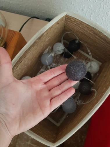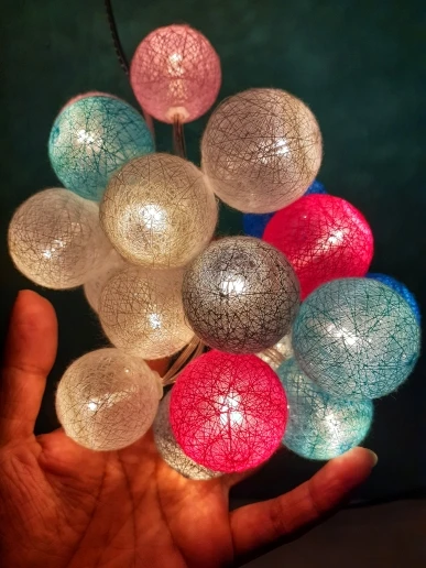 me esperaba las bolas un poco mas grande no tan pequeñas, pero iluminan bien y los colores son muy bonitos El único pero, como envían el paquete que tiene poca seguridad y se puede romper fácilmente