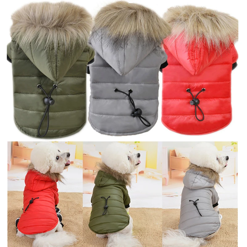 Модная зимняя теплая куртка на куртки для собак хлопковой подкладке для чихуахуа, костюм для щенка, пальто с капюшоном для маленьких и больших собак