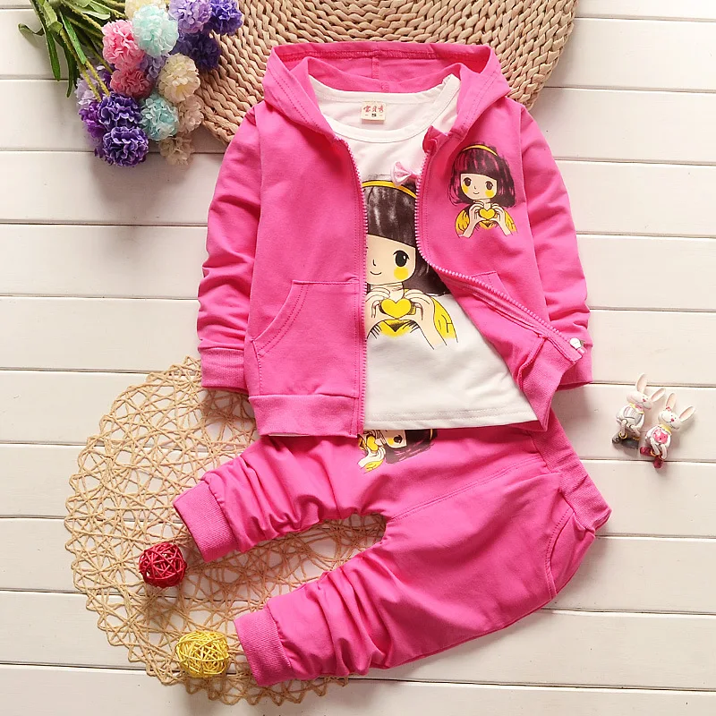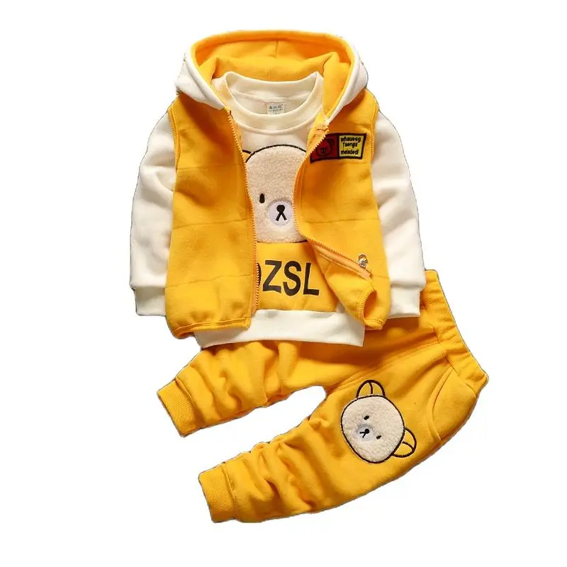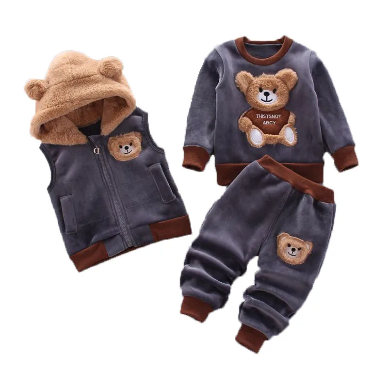 Осенне-зимний модный теплый вельветовый жилет с капюшоном и штаны с мультяшным медведем для девочек, комплект из 3 предметов для маленьких девочек, повседневный спортивный костюм для маленьких мальчиков