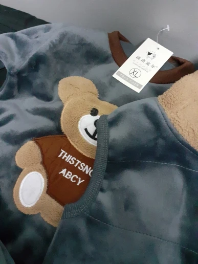 костюмчик очень , понравился, мягкий на ощупь, местами торчат нитки , но это не страшно , костюмом довольна