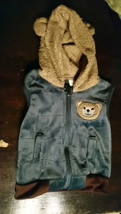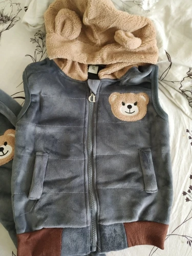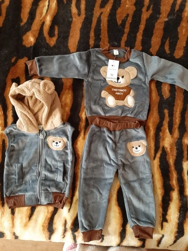 хороший костюм, только не зимной, просто теплый. на ребенка ростом 98 жилетка и кофта с запасом, а штаны почему то как раз.