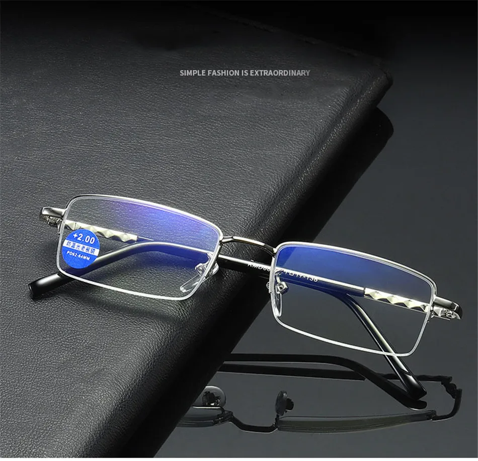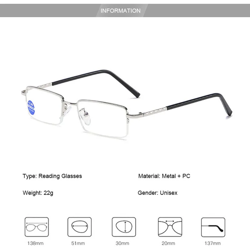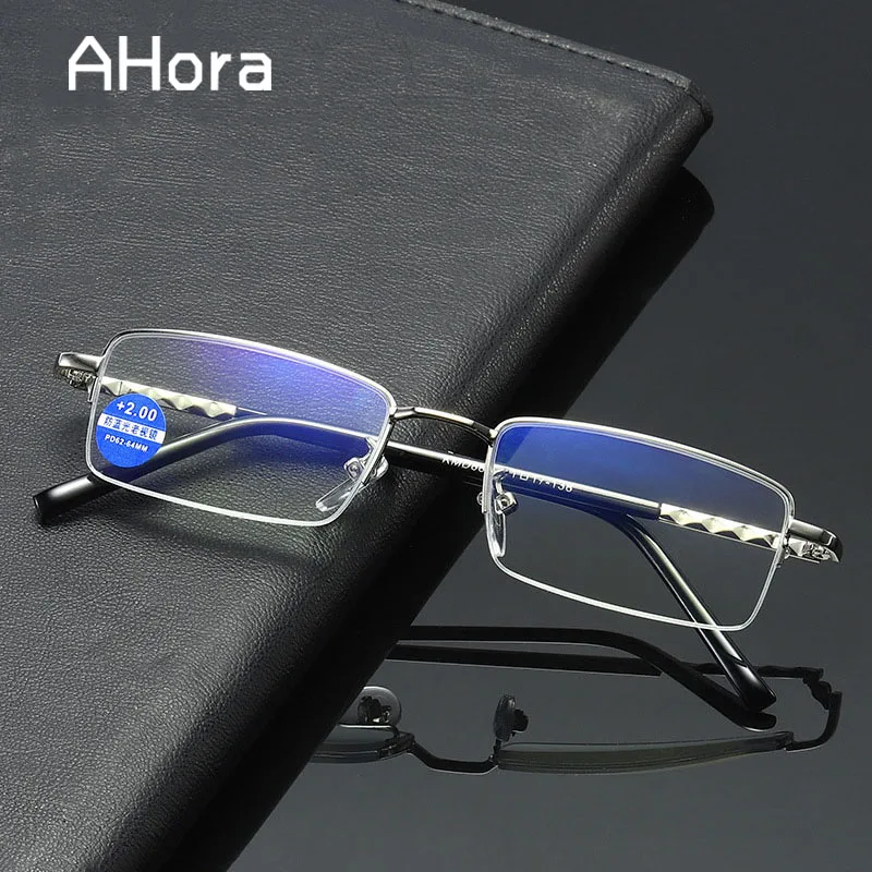 Очки Ahora мужские для чтения, аксессуар в деловом стиле, с квадратной полуободковой оправой, с защитой от сисветильник, для компьютера, из нержавеющей стали, от + 1,0 до + 4,0