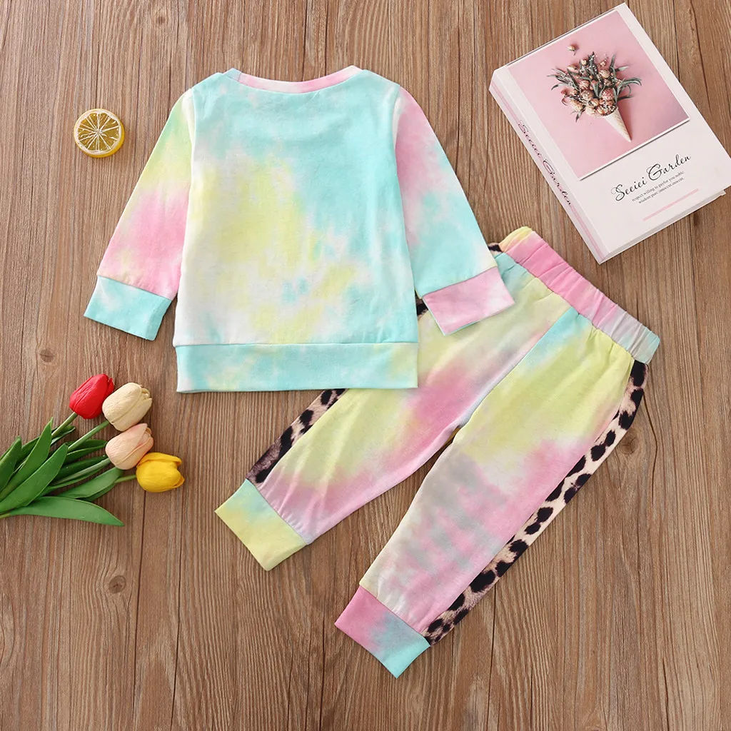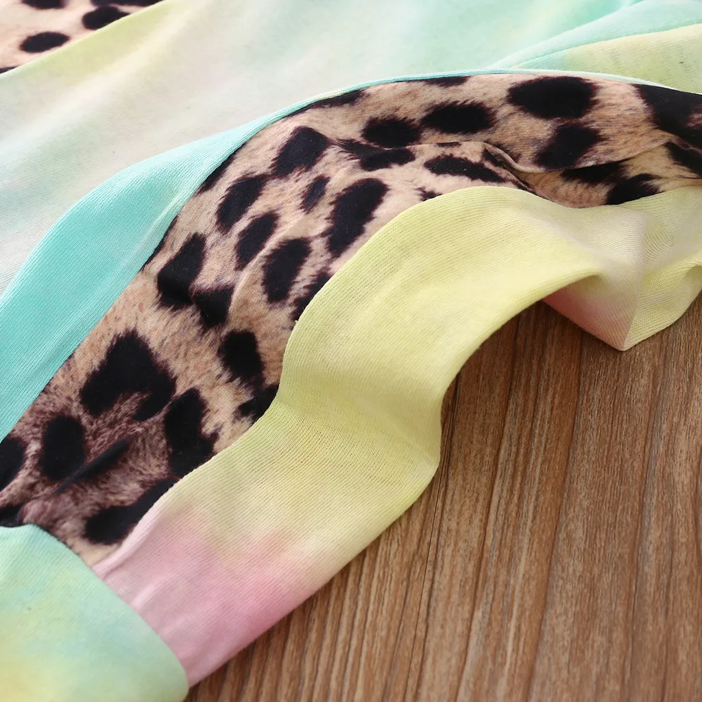 (От 6 месяцев до 4 лет), для девочек, детский осенний костюм с длинными рукавами, с галстуком-бабочкой-краситель элемент леопардовая расцветка пуловер "love", свитер + штаны, Детский костюм модная одежда 50 *