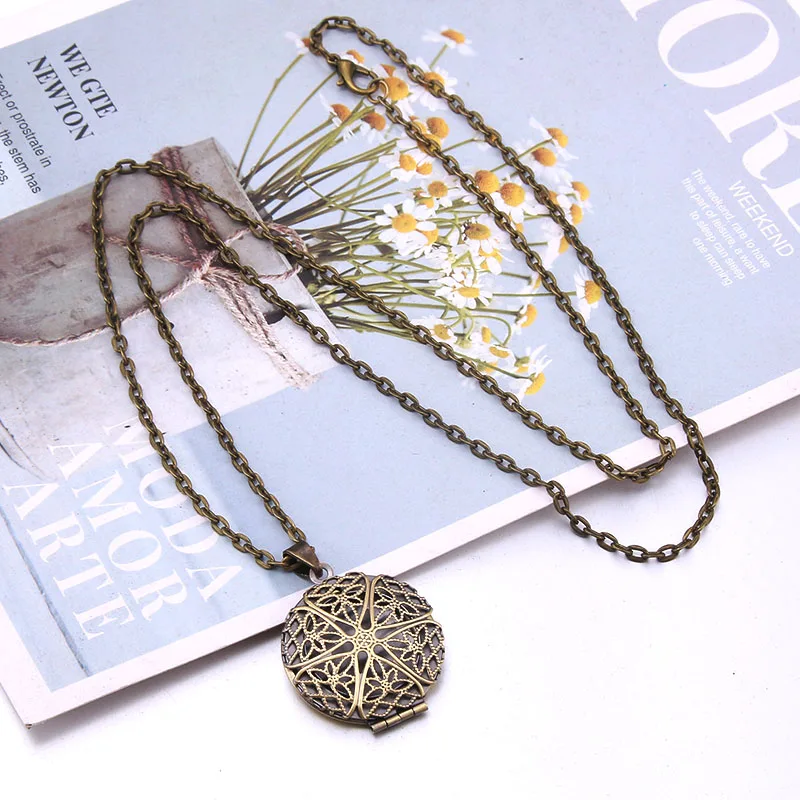 Сердце резной цветок в полоску медальон кулон ожерелье для женщин Винтаж Древняя Латунь открытие фото коробка ювелирные изделия Романтический подарок