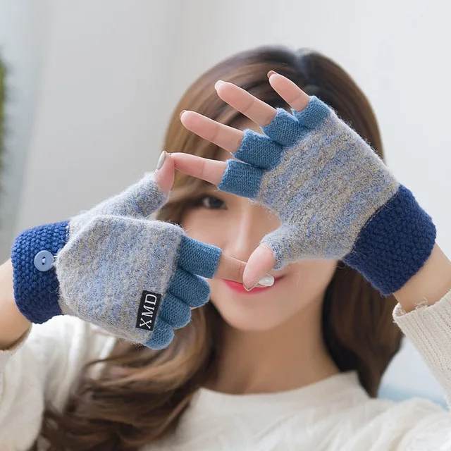 Женские вязаные теплые перчатки с откидной крышкой, перчатки с откр...