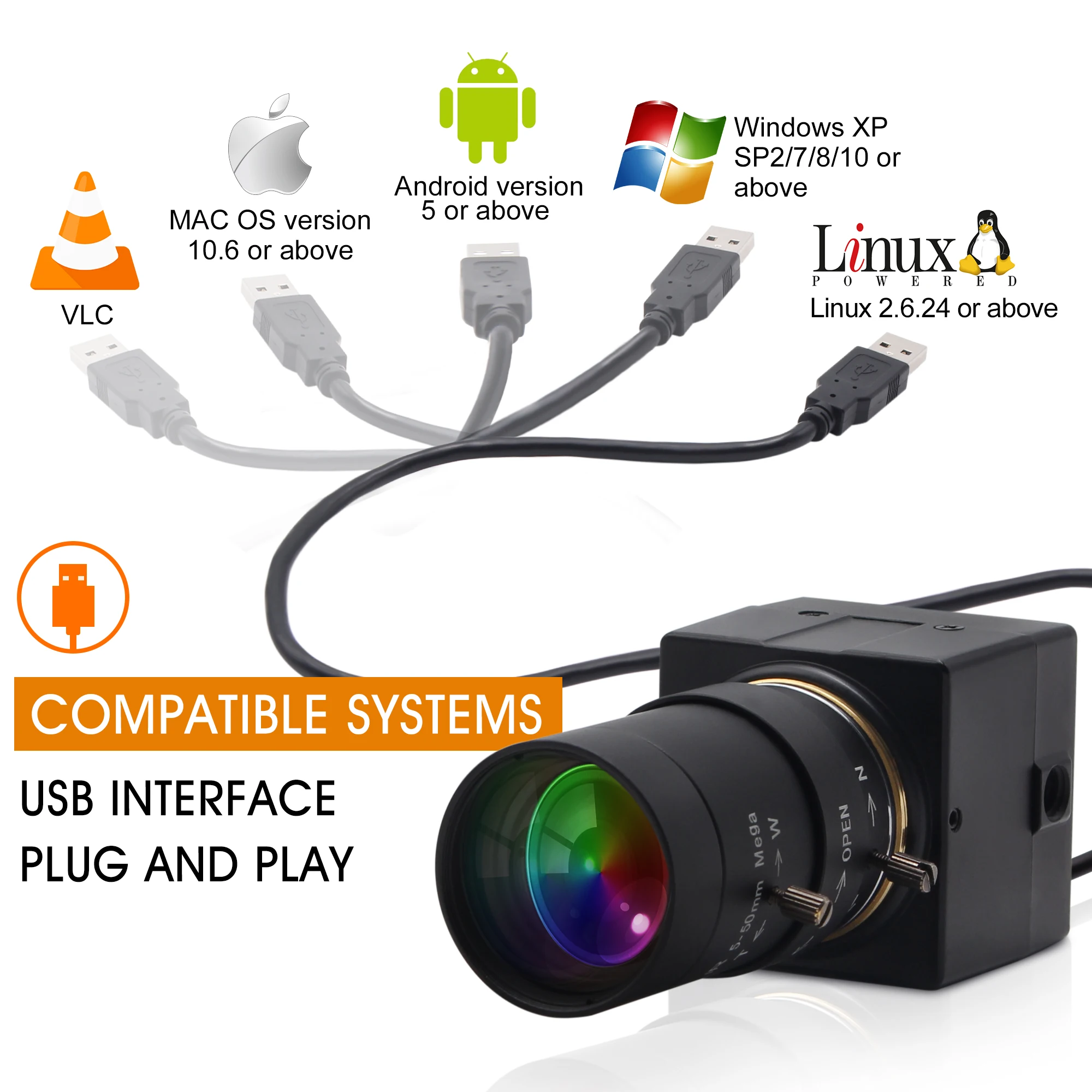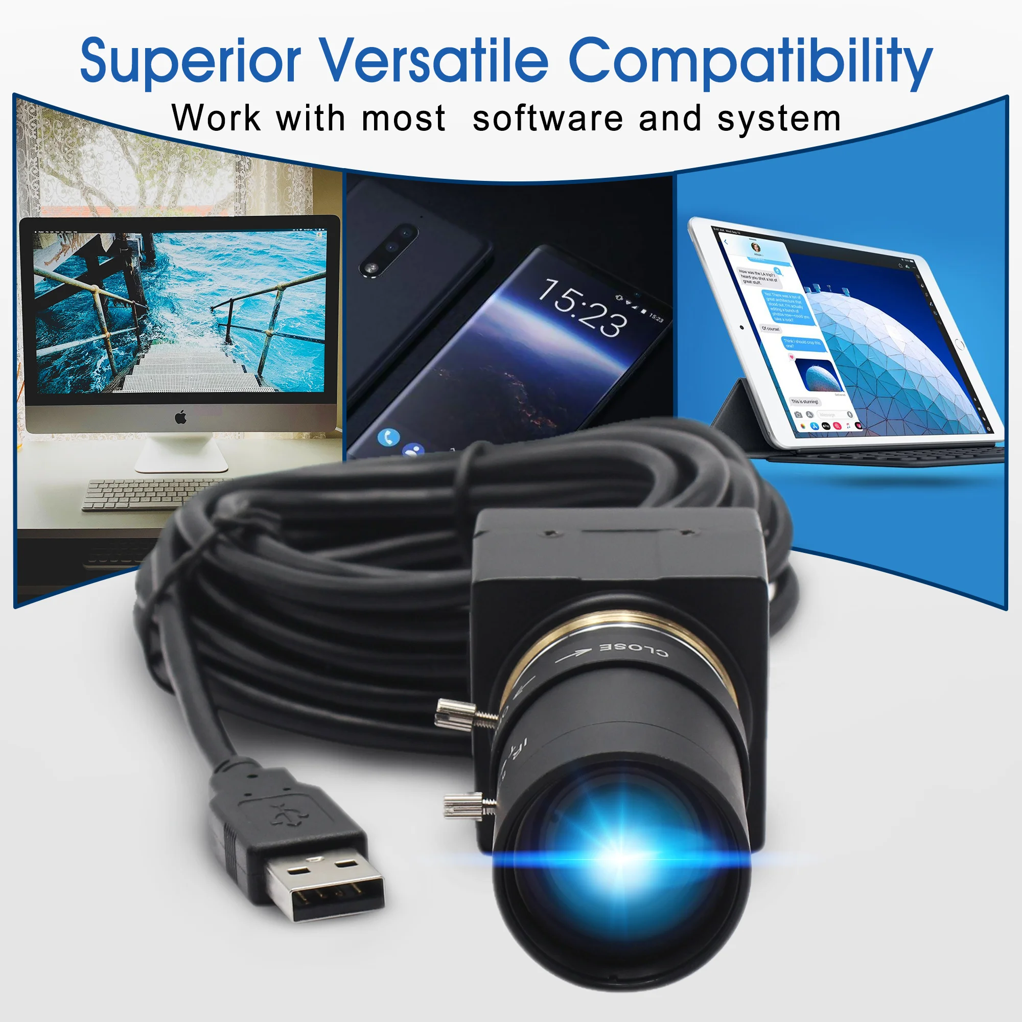 Мини-USB-веб-камера ELP 4K, металлический чехол с высоким разрешением, Объектив CS 2,8-12 мм5-50 мм для обеспечения безопасности в строительных и промышленных помещениях
