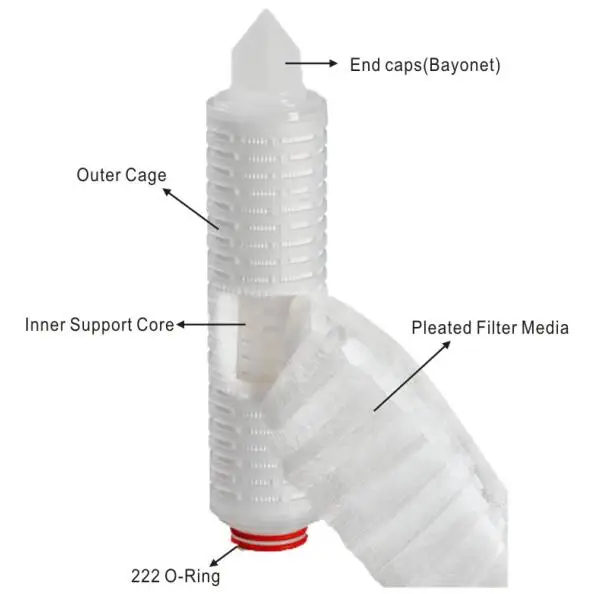 10 "Parker плиссированный фильтрующий картридж 0,45 мкм, 222 О 'кольцо дизайн и байонет, полипропилен микро волокна медиа