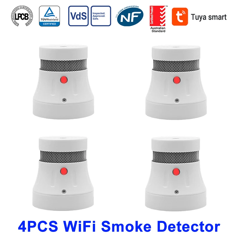 CPVAN 4 шт. Tuya WIFI умный детектор дыма коптильня комбинированная пожарная сигнализация 85 дБ Высокая чувствительность Домашняя безопасность датчик дыма