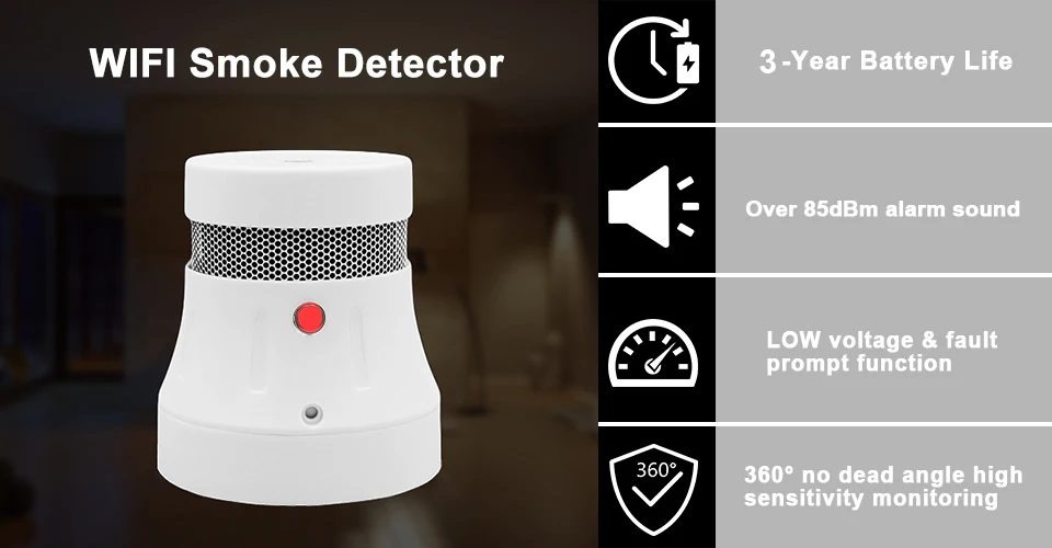 Детектор дыма Tuya Smart Life APP control 85 дБ Предупреждение WIFI...
