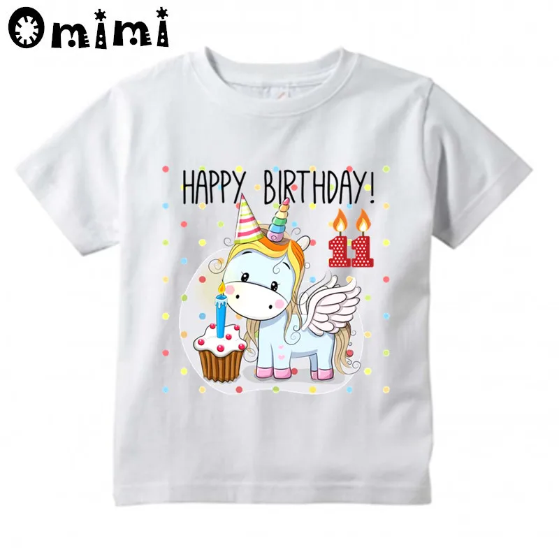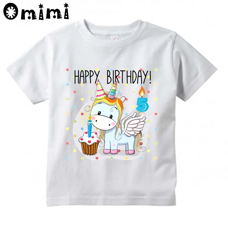 Детская футболка с единорогом на день рождения, отличные милые топы с коротким рукавом для мальчиков и девочек, детская забавная футболка с цифрами, ooo3048