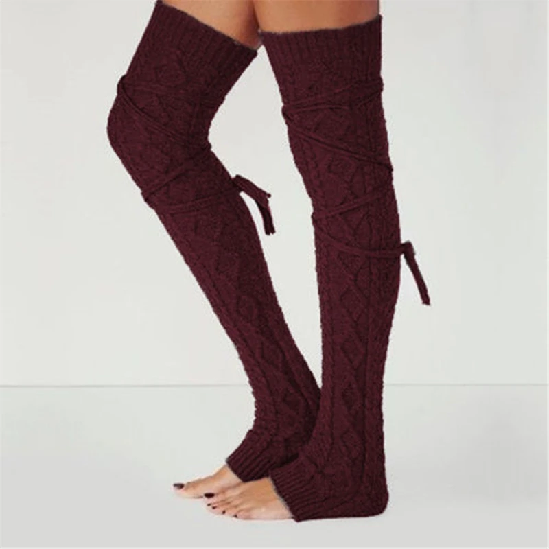 Вязаные чулки для осени и зимы, теплые однотонные женские носки выше колена, с дырками, модная одежда