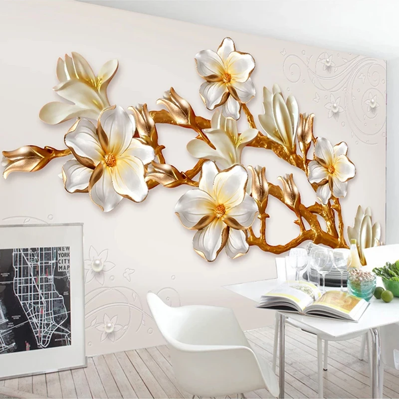 Пользовательские обои 3D стереоскопический Рельефный цветок настенные фрески в китайском стиле гостиная диван ТВ фон обои домашний декор