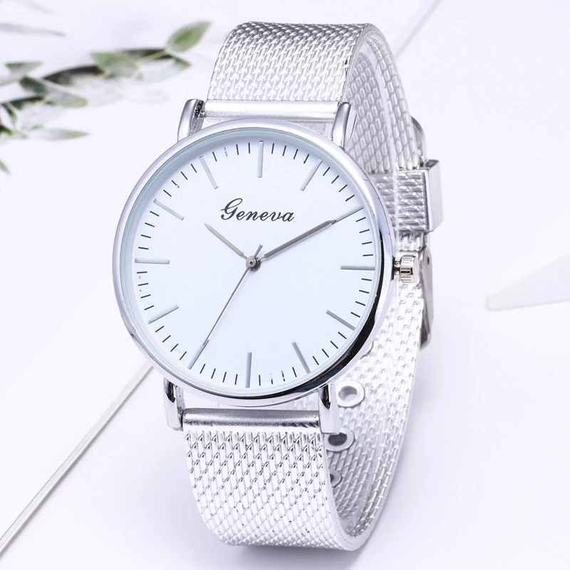 Внимание:Ремешок не металлический. Имеет металлический вид, но изготовлен из твердого пластика.Особенности:100% новый товар высокого качества.Сетчатый жесткий пластиковый ремешок, который отличается прочностью.Циферблат часов в простом дизайне тщательно отполирован, с тонким металлическим сетчатым ремешком, что делает его более элегантным.Высокопрочная крышка циферблата обладает хорошей коррозионной стойкостью, долговечна в использовании.Часы в стильном и модном дизайне-прекрасный подарок друзьям и близким.Спецификация:Цвет: золотисто-белый, серебристо-белый, золотисто-черный, черныйМатериал корпуса часов: сплавПримечание:Часы не имеют секундной стрелки-просто две стрелки, час и минута.Посылка1 * часы с сетчатым ремешком