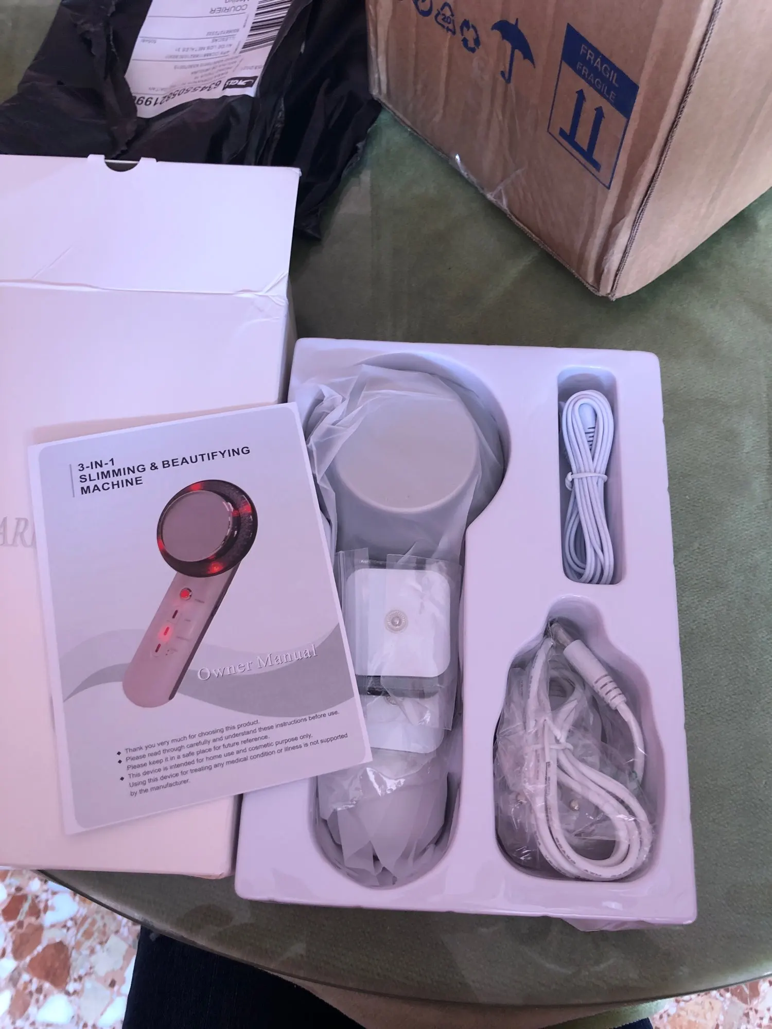 Продавец отправил этот товар быстро, поэтому две звезды не стучатся в них. Однако этот продукт не очень эффективен. При использовании ультразвуковой функции вы не можете слышать никакого гудения, что должно возникнуть при использовании ультразвуковых продуктов. Один из кабелей электрода также прекратил работу после 2-го использования. Таким образом, я думаю, что в этом продукте есть некоторые дефекты проводки. Если вы хотите использовать это как устройство для терапии красным светом, я думаю, что это лучше для этого. Я бы рекомендовал купить специальную машину EMS и выделенную ультразвуковую машину и специальный инструмент красного света, а не попробовать купить один инструмент, который считает, что делает все три.