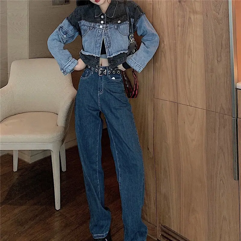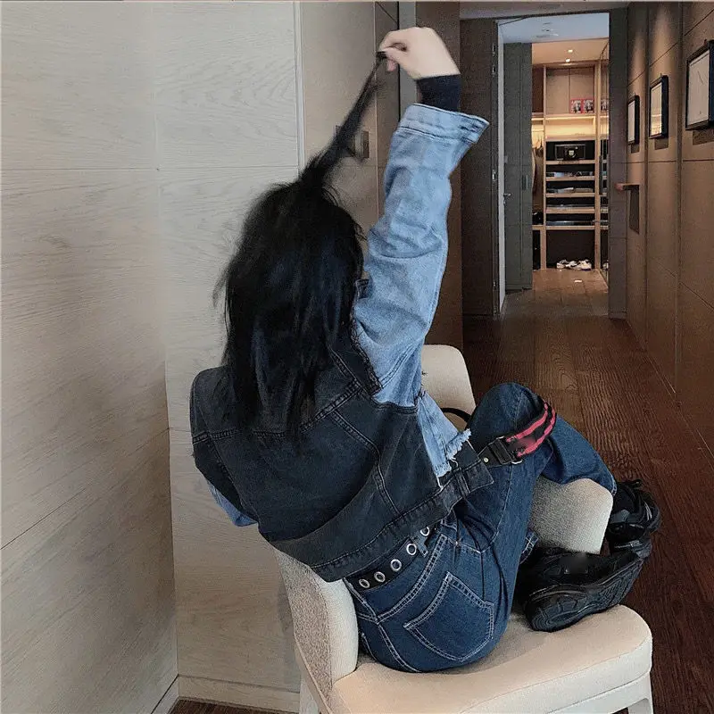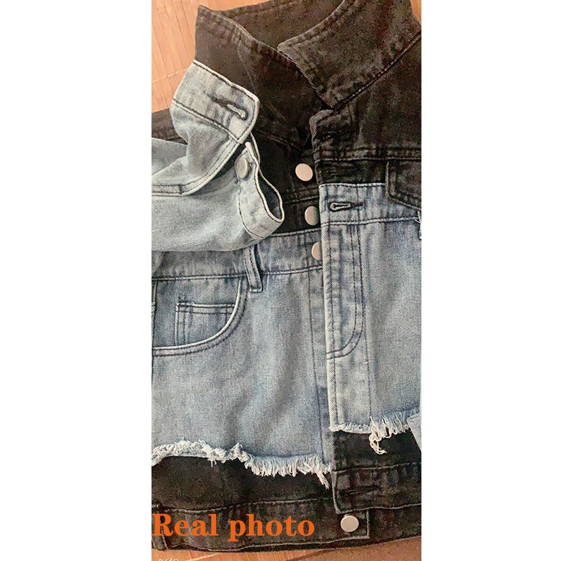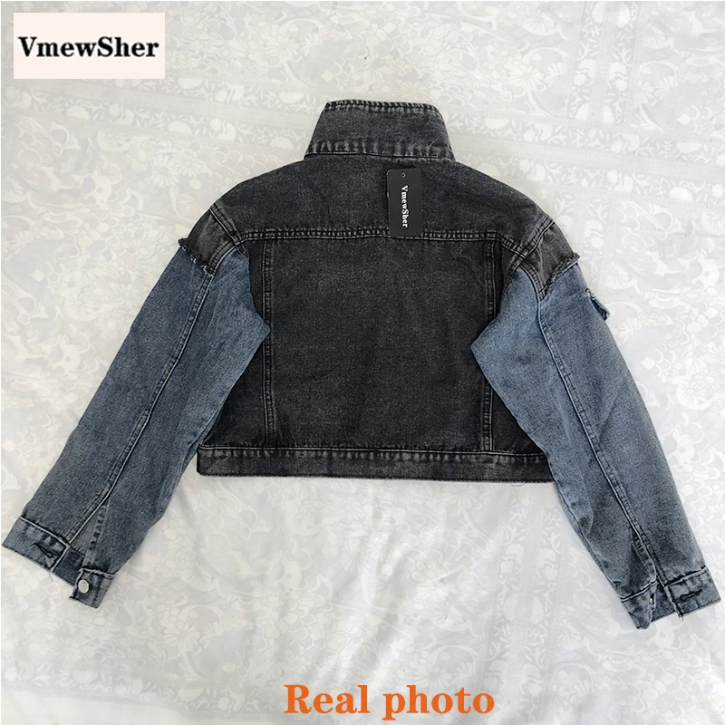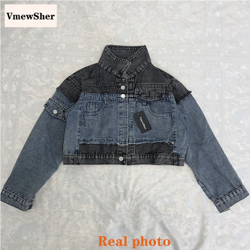 Женская джинсовая куртка VmewSher, короткая комбинированная куртка с длинным рукавом, в стиле пэчворк, уличная одежда, 2020
