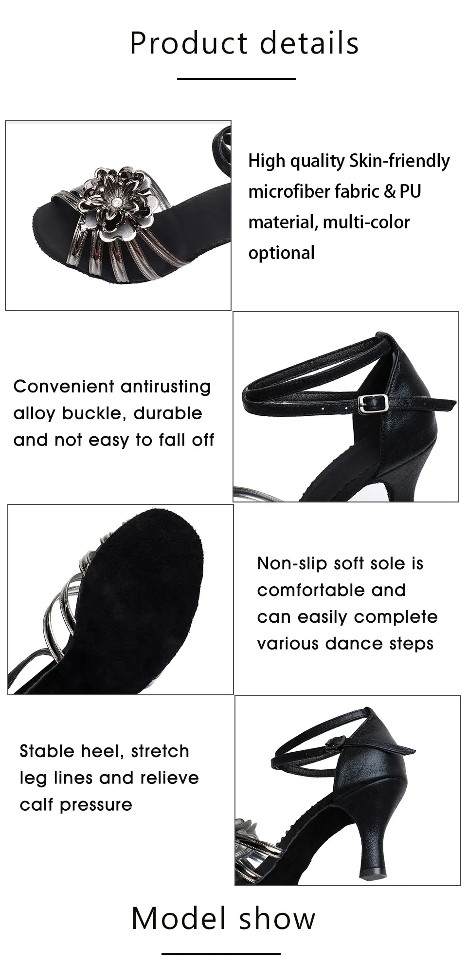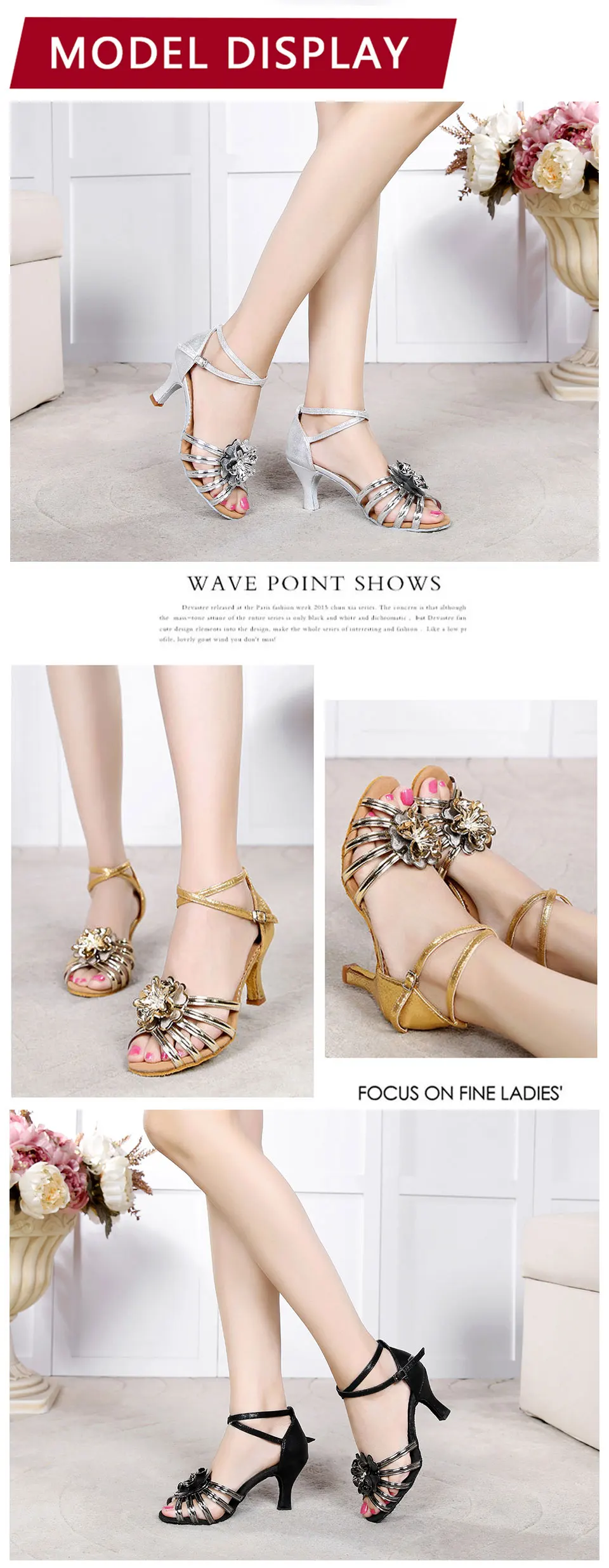Танцевальная обувь для латинских танцев для женщин, для девушек, для бальных танцев, Танго, Современная танцевальная обувь, Каблук 5/7 см, черные/Золотые/серебряные сандалии, Прямая поставка