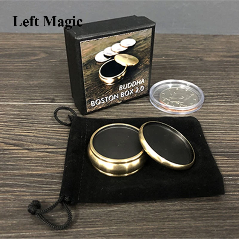 Поставляется с Буддой Boston Box 2,0, полудолларовой оболочкой, черной бархатной сумкой и видео инструкцией (Инструкция 2,0 + 1,0).