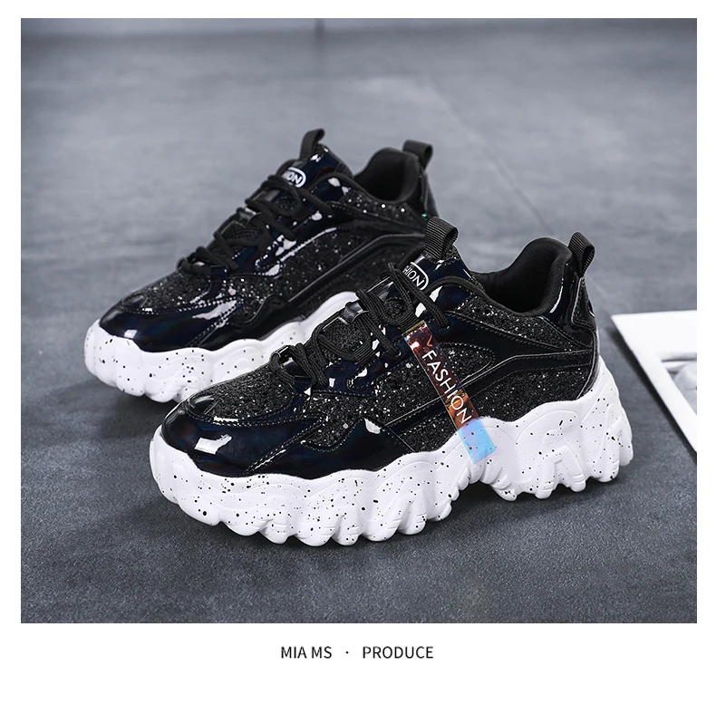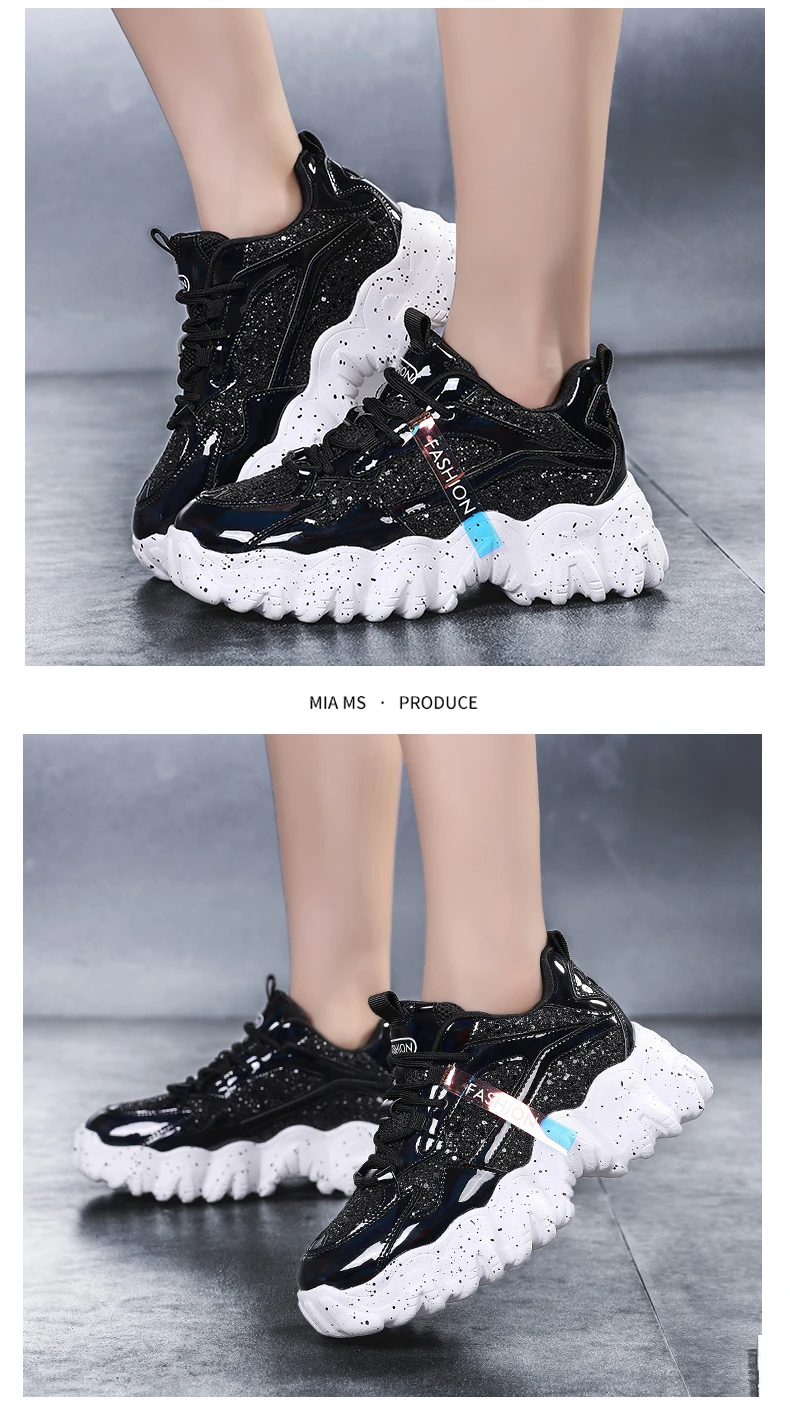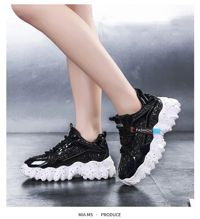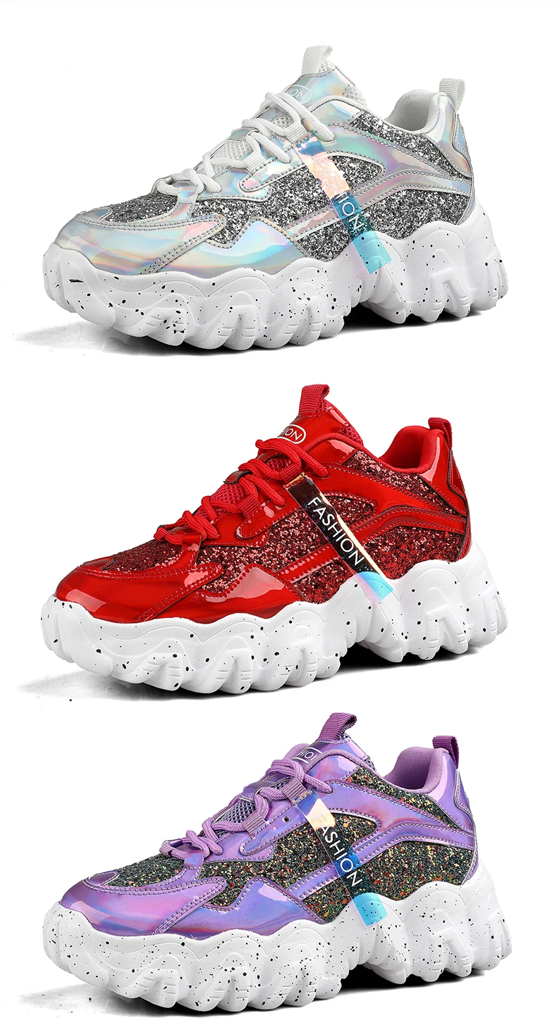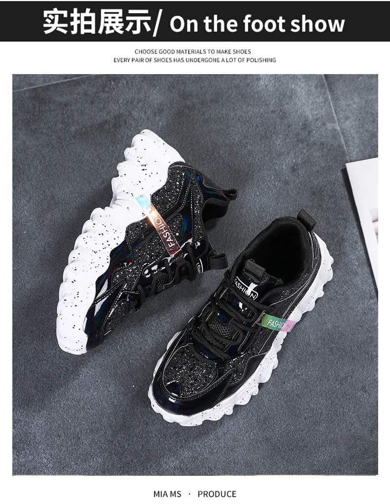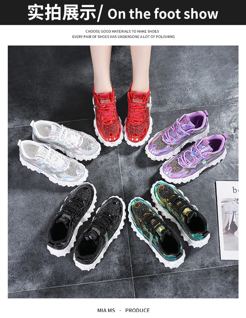 Кроссовки женские блестящие, повседневная обувь на плоской платформе, массивные, модные