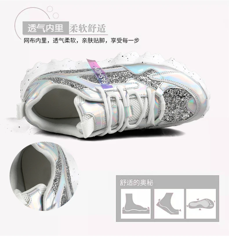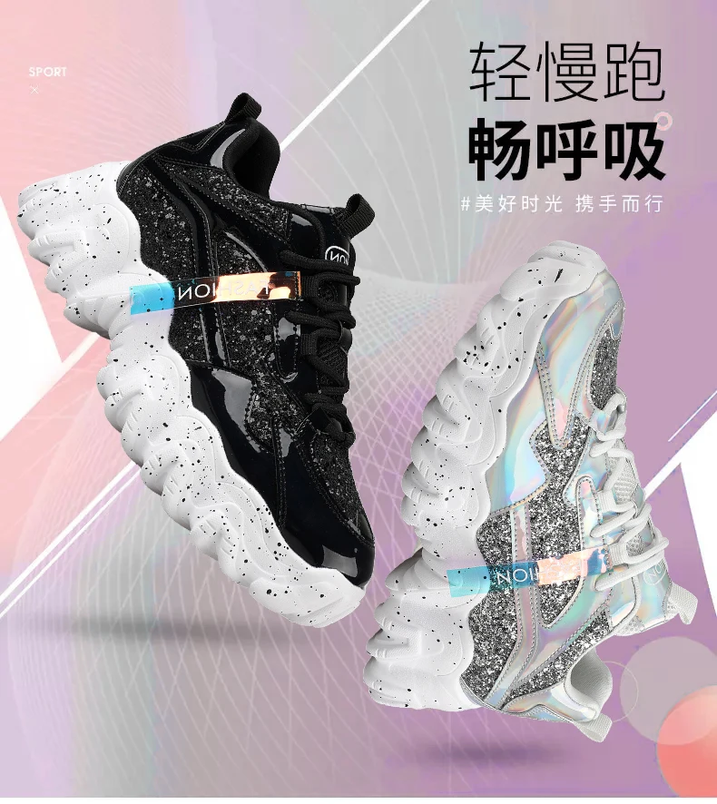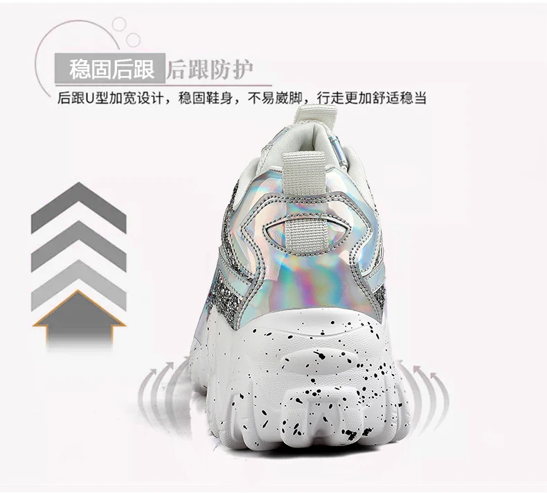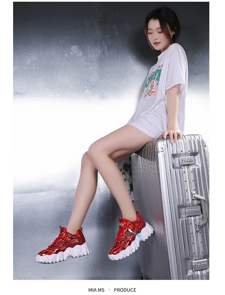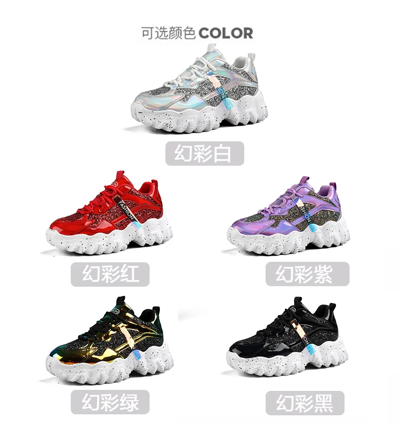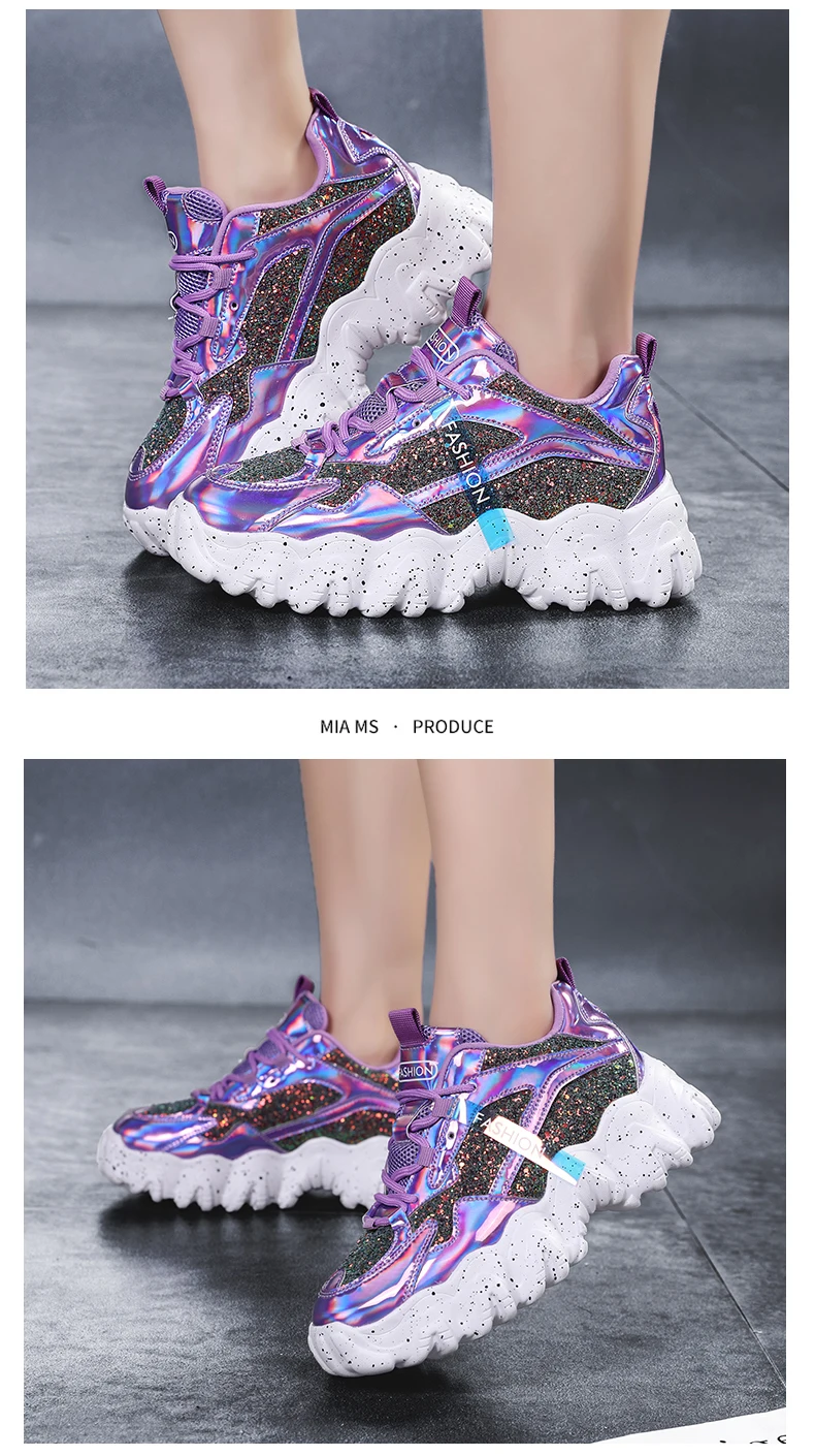 Кроссовки женские блестящие, повседневная обувь на плоской платформе, массивные, модные