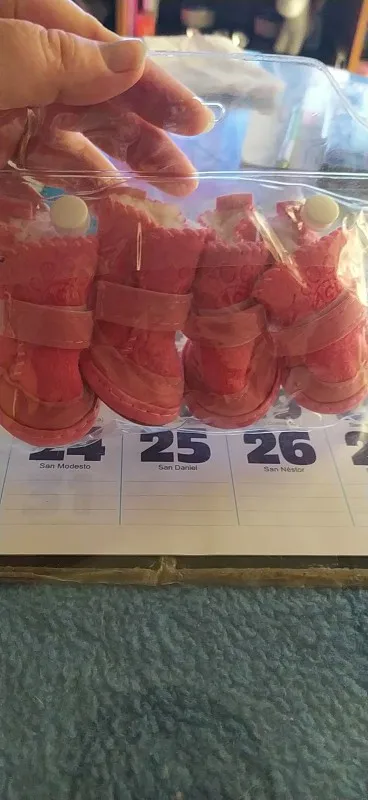 Son tal cual se ven en la imagen... sólo que la talla 3 es muy pequeña para mi perrita. Ella pesa entre 6 o 7 kilos y es de patitas delgadas... tal vez le quedan a un cachorro, perro toy o un Chihuahua. Ojo, no te fies en la medida por fuera de la suela... su tamaño debe ser como 1 cm menos. Increíble la rapidez, tardó como 17 días a Chile.