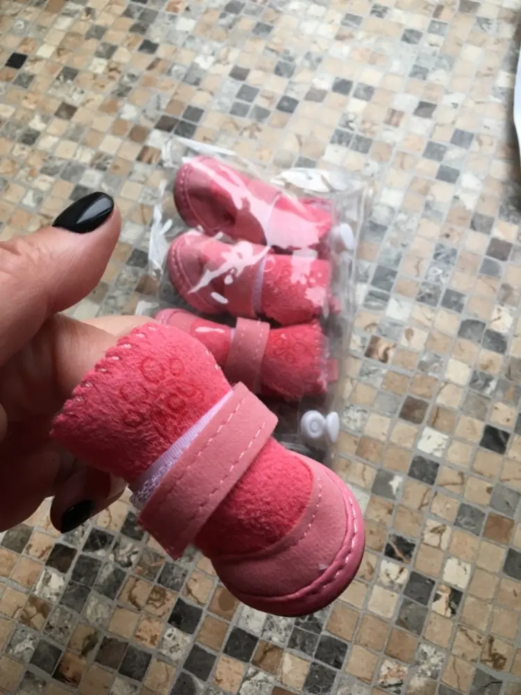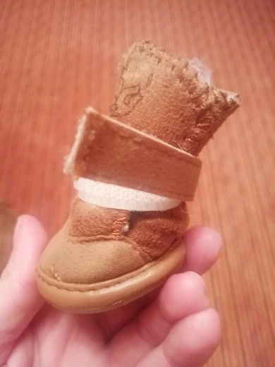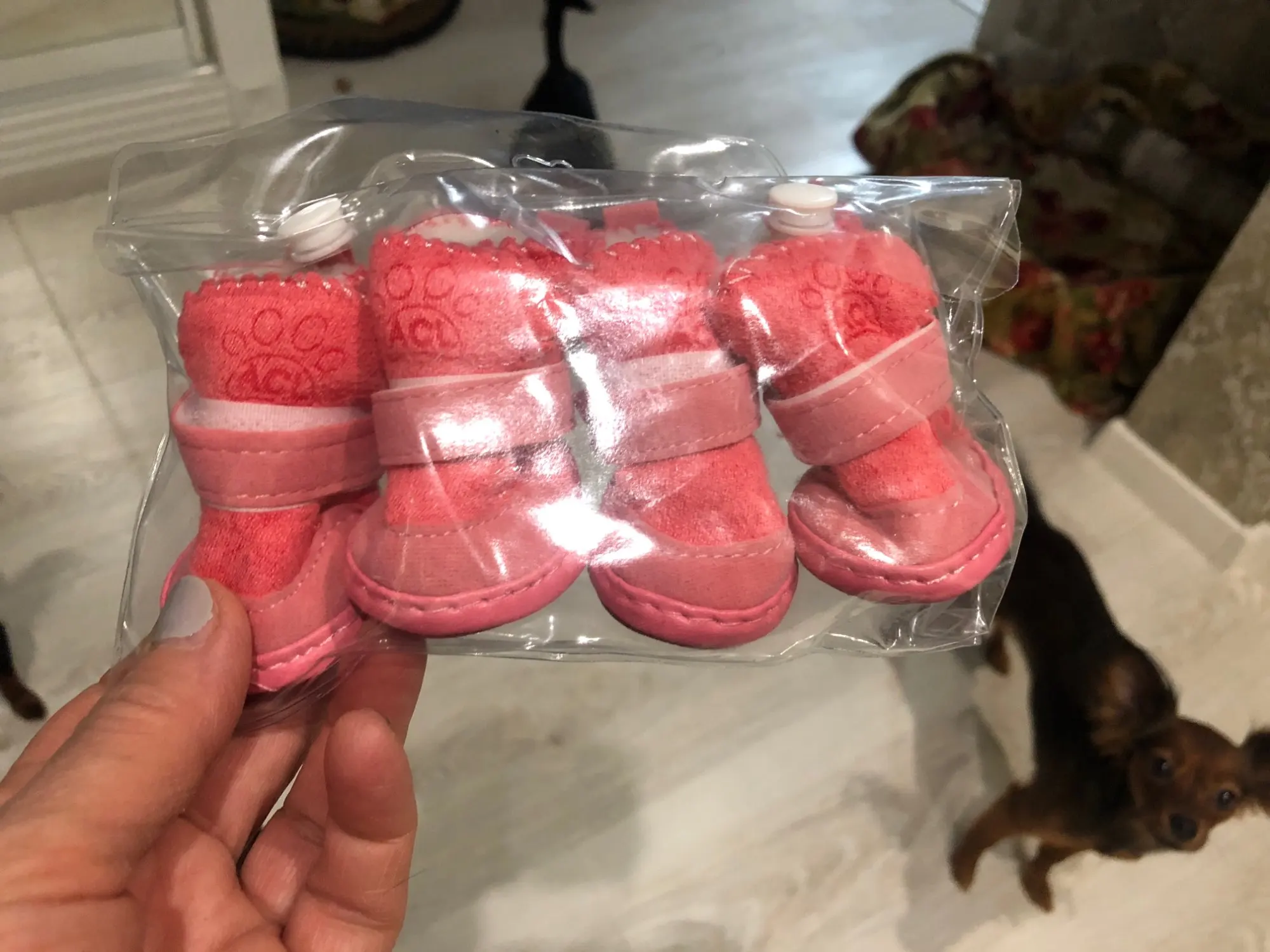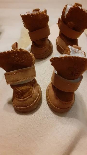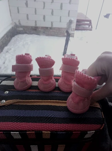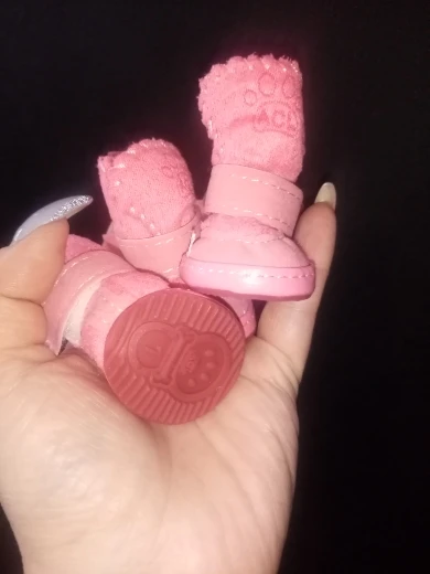 Пришли тапулички , очень быстро. Они прелесть , мягкие и удобные. Конечно не на слякоть , а на снежок . Собаке очень удобно .Спасибо большое . Брали на Йорка 2,200 кг , размер подошёл отлично))