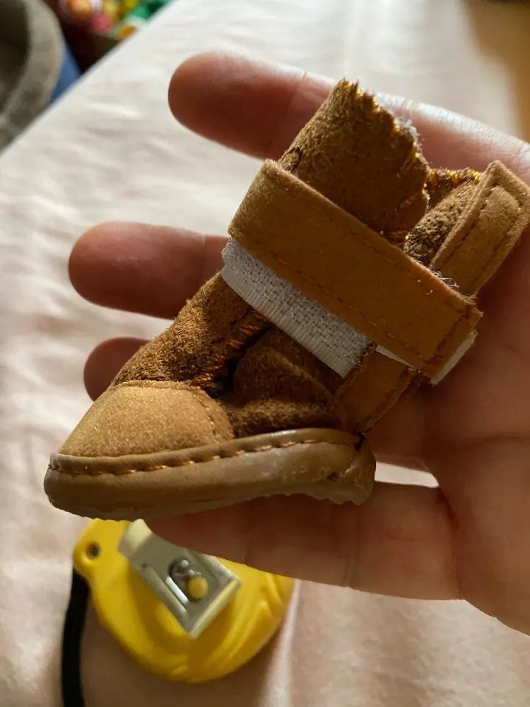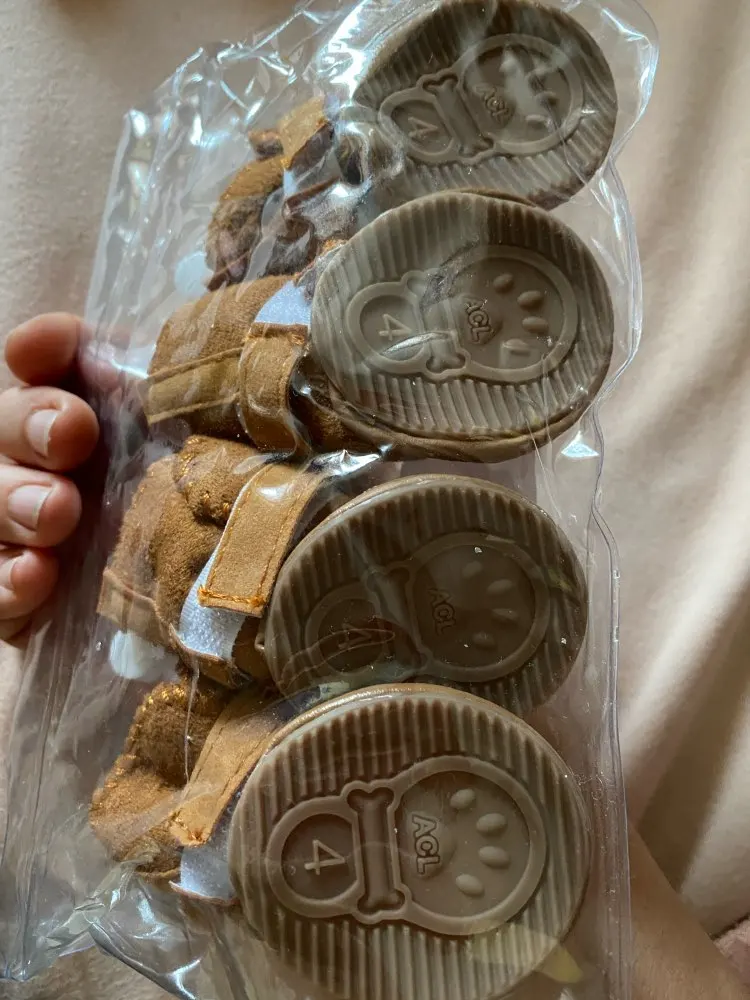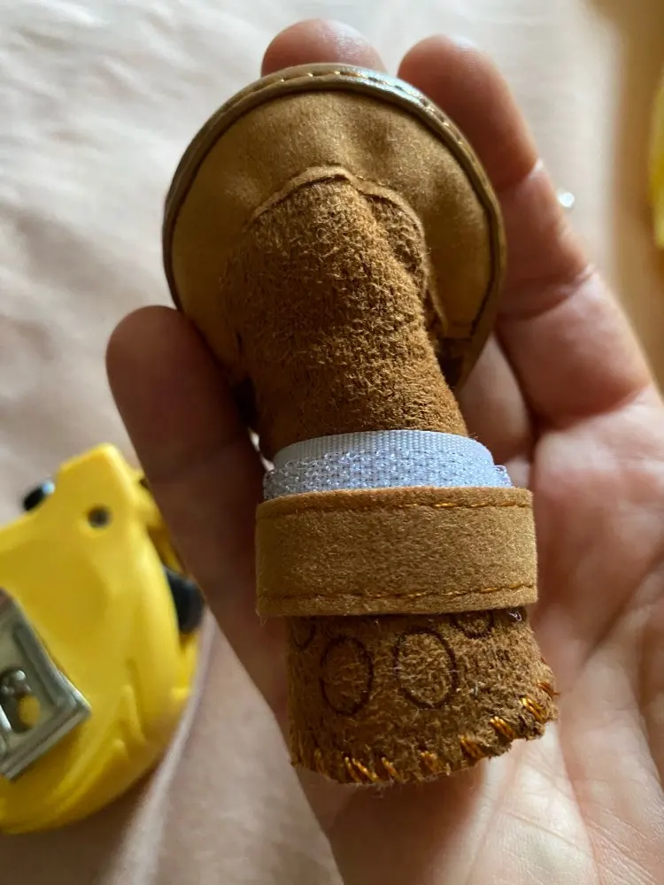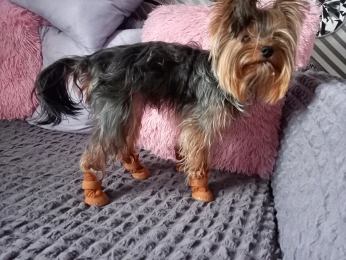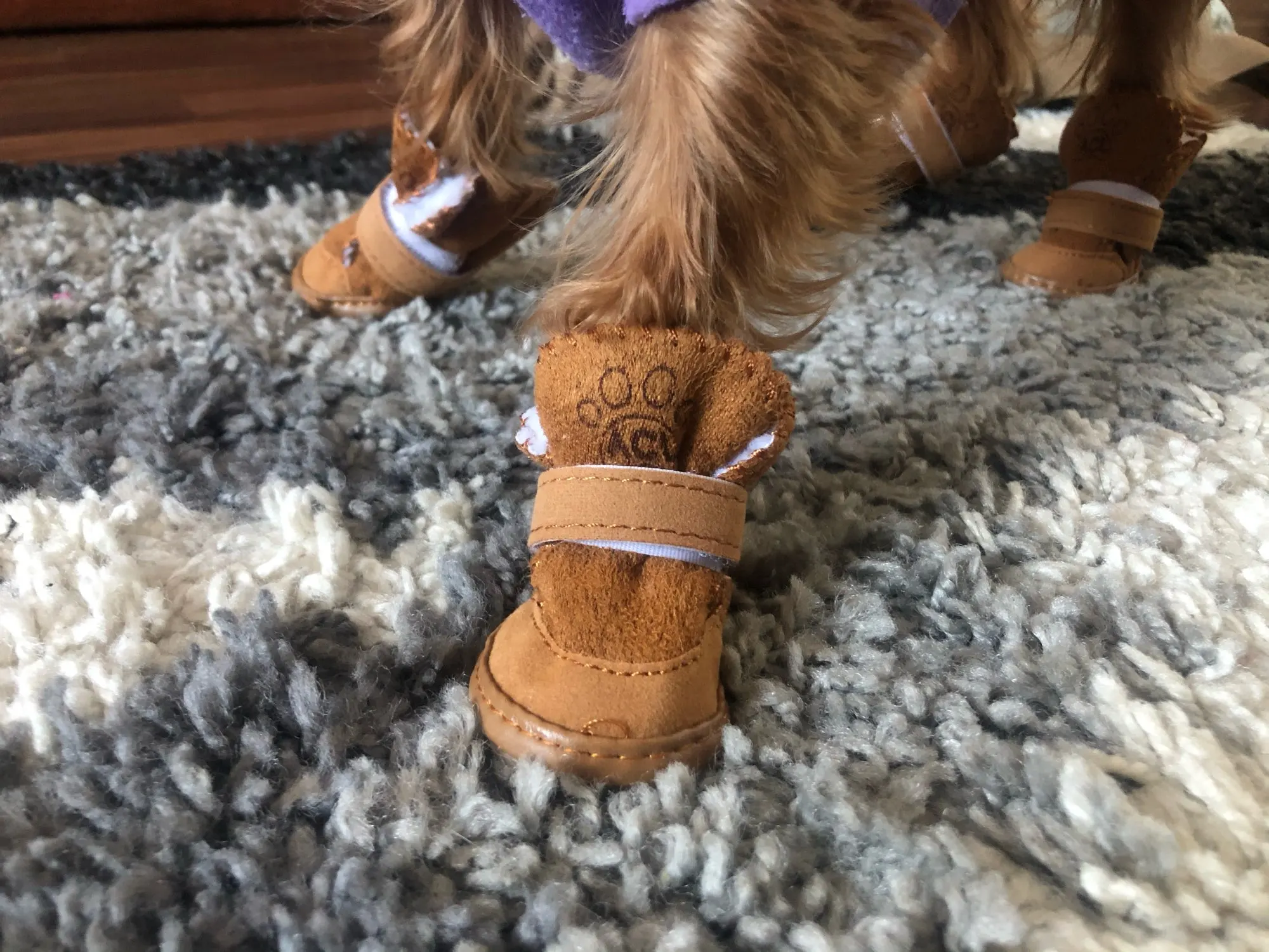 Пришли тапулички , очень быстро. Они прелесть , мягкие и удобные. Конечно не на слякоть , а на снежок . Собаке очень удобно .Спасибо большое . Брали на Йорка 2,200 кг , размер подошёл отлично))