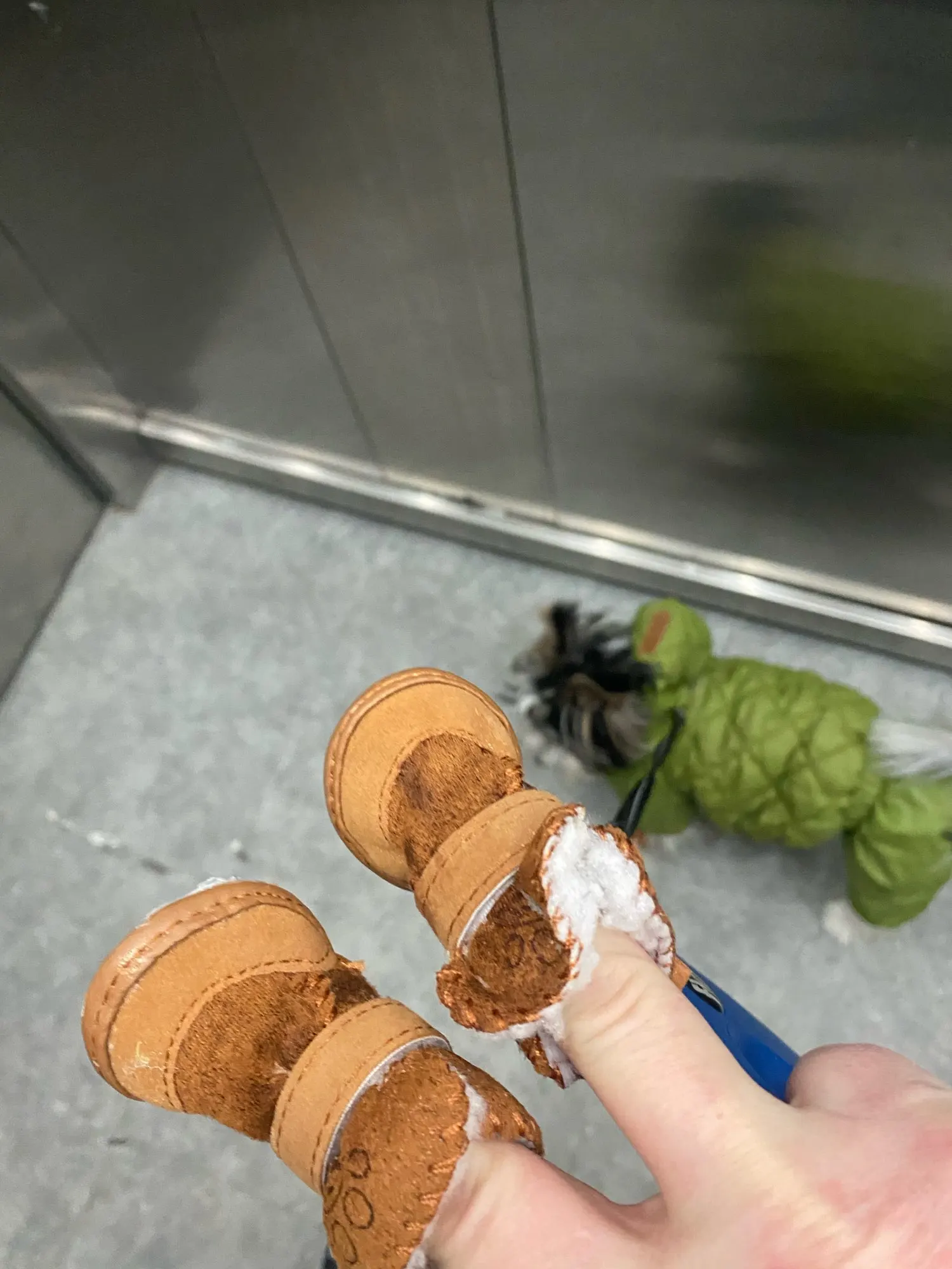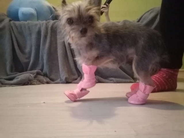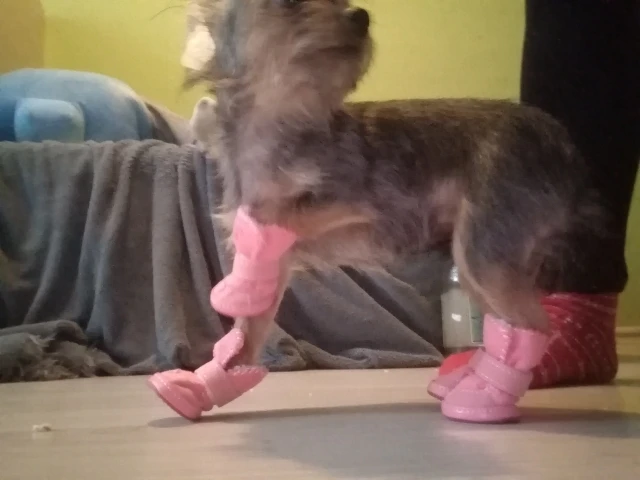 Сапожки чудные, но мой песик (той терьер) не дал примерить даже на 1 лапу. Начал рычать и кусаться.