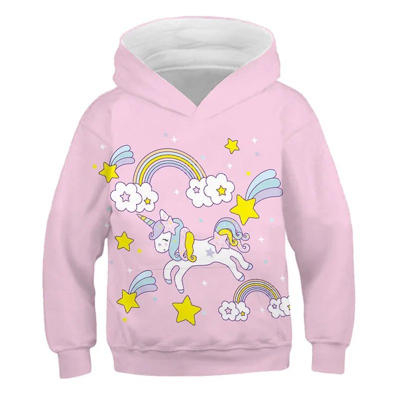 Детская толстовка с капюшоном и принтом единорога, для девочек-подростков