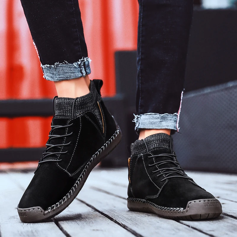 Ботинки мужские, из искусственной замши, теплые, зимние, дышащие
