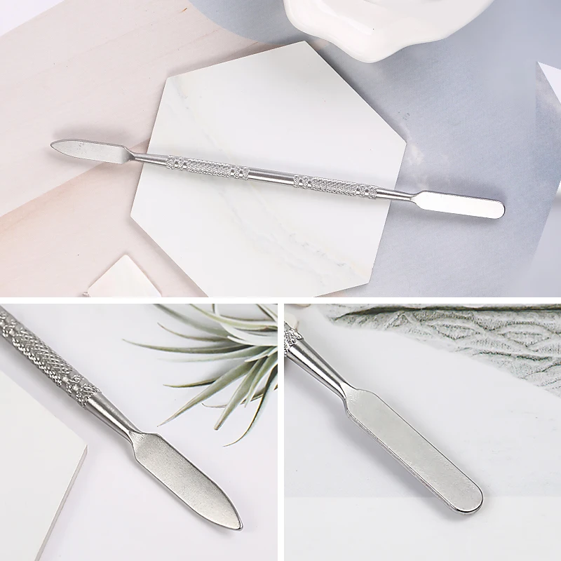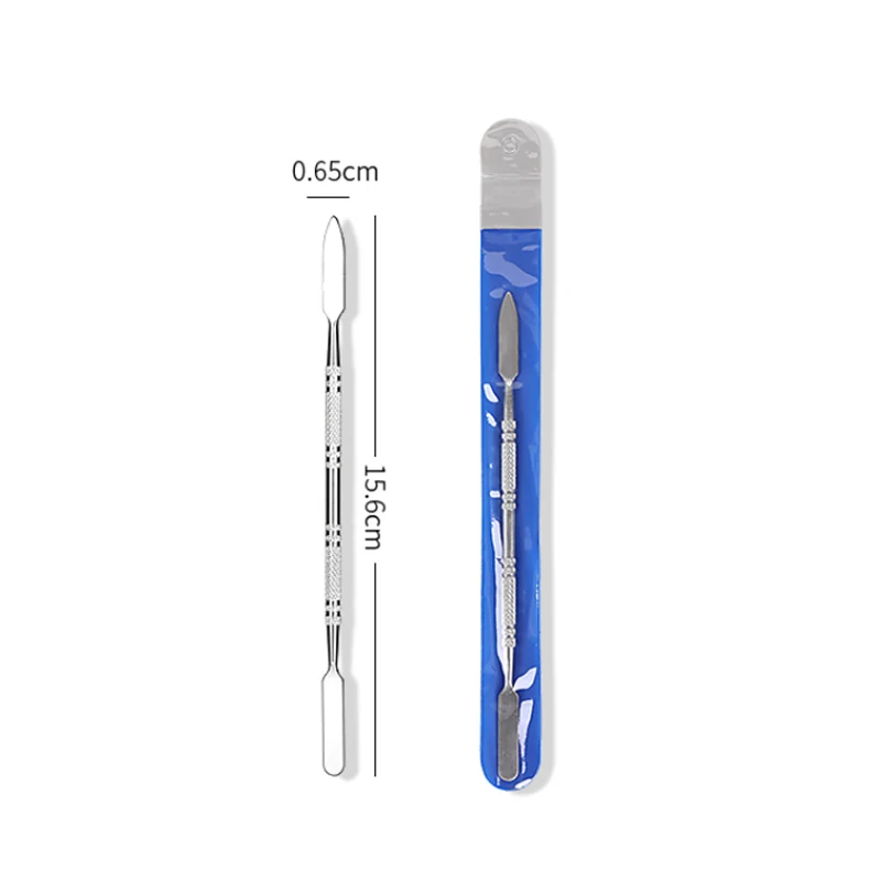 Остроконечная часть используется для нанесения пудры для ногтей, клея для кистей и смешивания цветов.