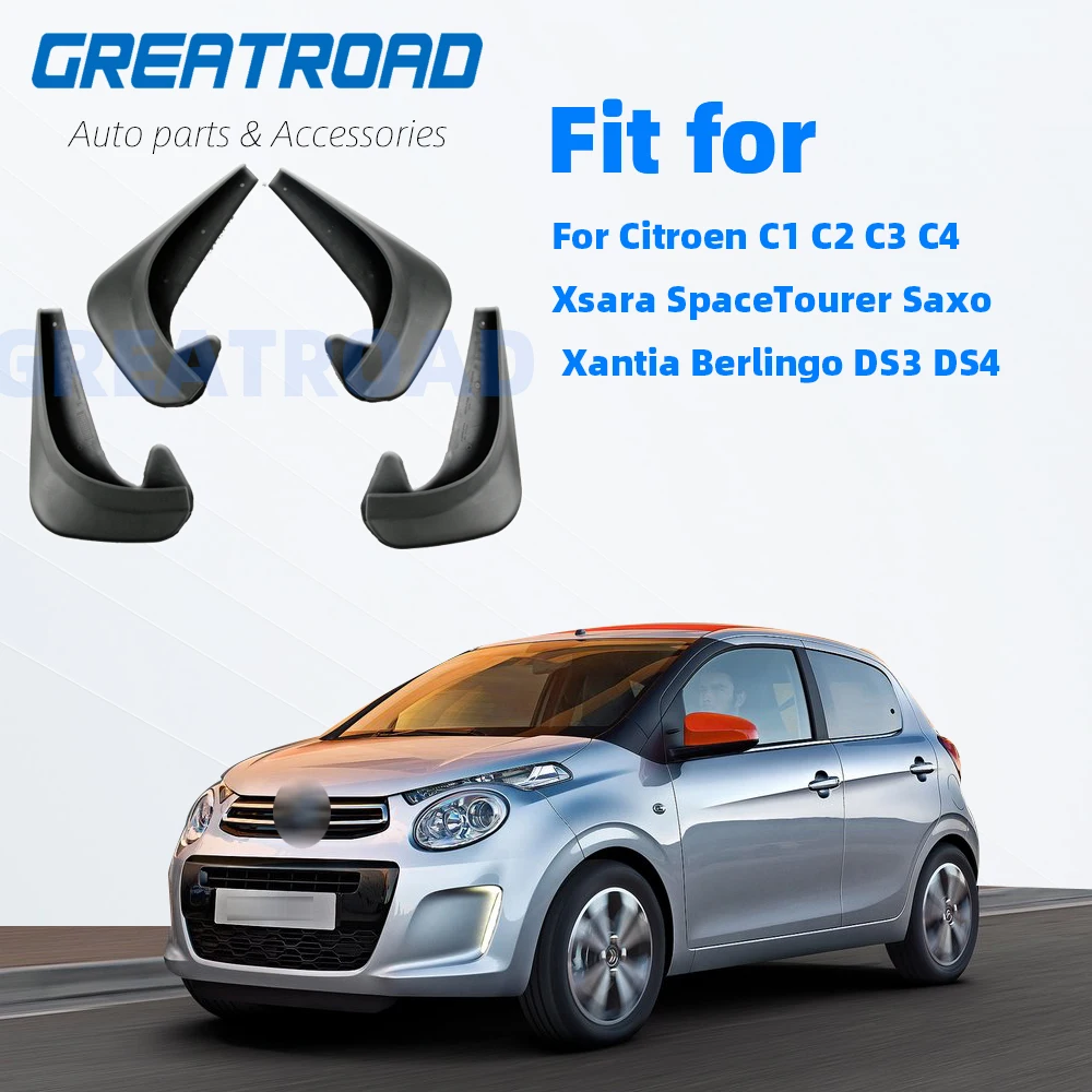Фитинг: для Berlingo Citroen C1 C2 C3 C4 Grand Picasso Xsara SpaceTourer C5 C6 C8 C-Crosser C-Zero Saxo Xantia DS3 DS4 DS5Примечание: это универсальные брызговики, поэтому вы не можете быть идеально подходящими для некоторых транспортных средств, в качестве альтернативы вам может потребоваться обрезать их, чтобы соответствовать определенным транспортным средствам