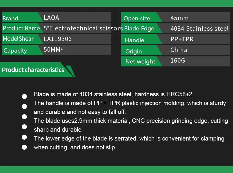 Ножницы электрические LAOA из нержавеющей стали, 6 дюймов, для резки кабеля, инструмент для зачистки проводов