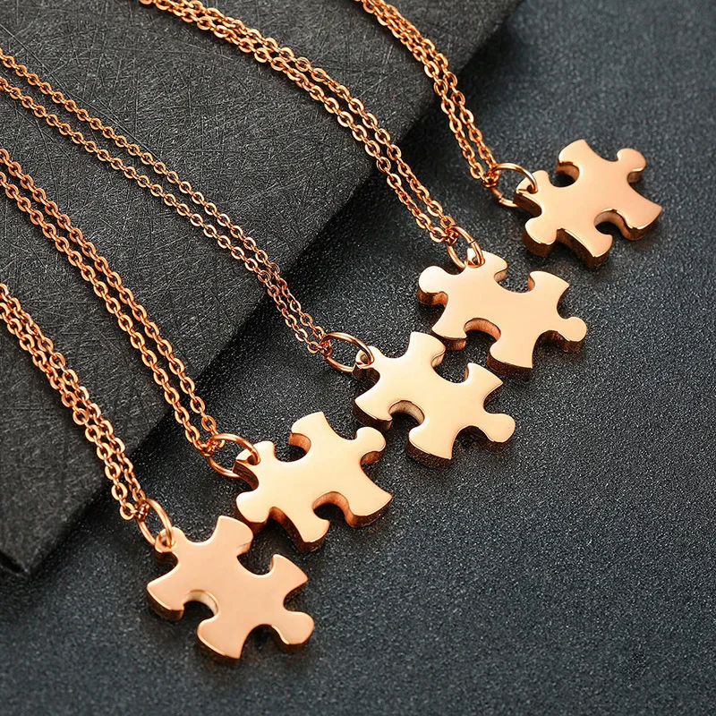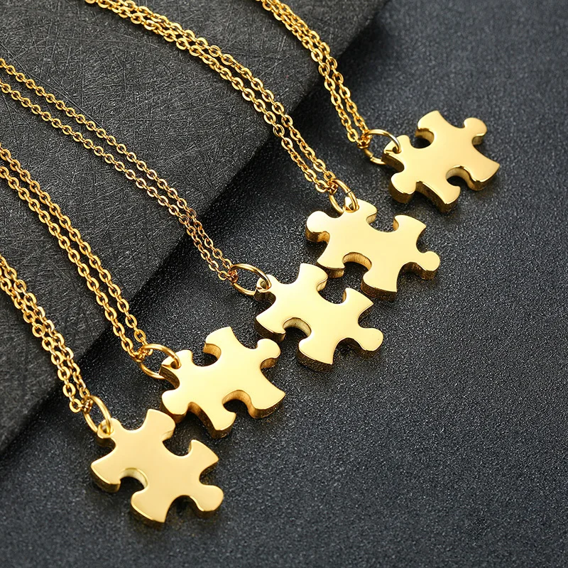 Минималистичные парные Пазлы подвеска BFF, набор из 2345 шт., ожерелья для женщин, индивидуальные имена, из нержавеющей стали, индивидуальные подарки, ювелирные изделия