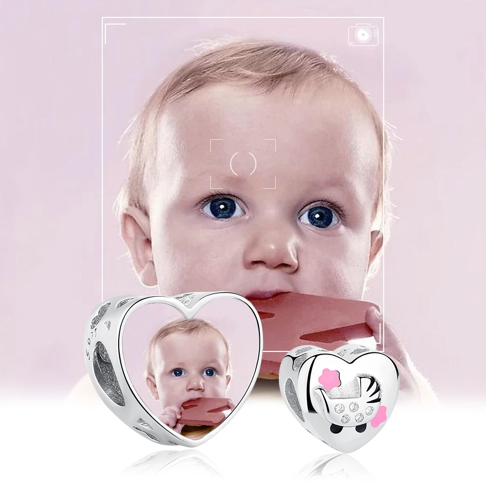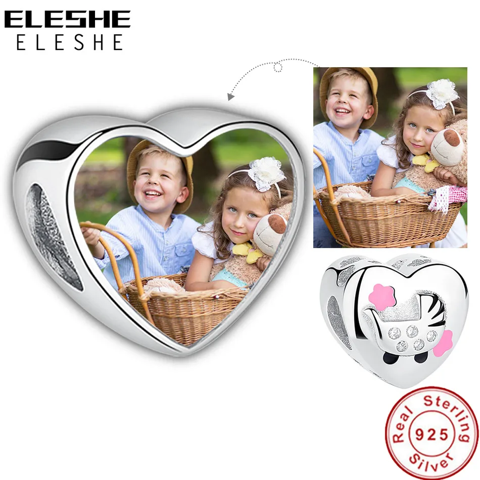 ELESHE 2020 пользовательские фото сердечными амулетами 925 пробы серебро детскую коляску тонкой бусы, подходят к оригинальному браслету, браслет для изготовления ювелирных изделий