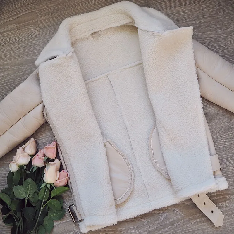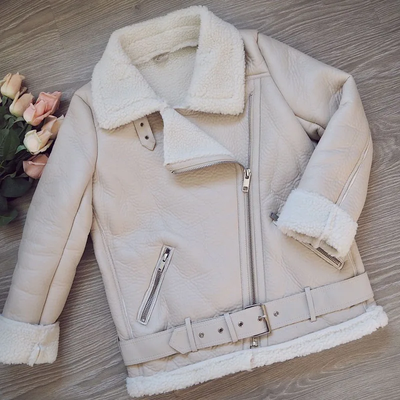 Зимняя женская куртка из искусственной кожи, облегающее пальто на молнии с поясом, однотонные повседневные плотные теплые шерстяные куртки, верхняя одежда, женские топы, одежда