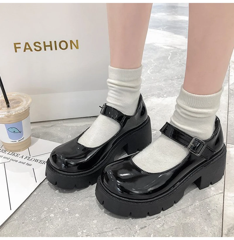 Женские Туфли Мэри Джейн, Лакированная кожа женские туфли-лодочки; Женские туфли в Стиле Лолита женские Водонепроницаемый на платформе для костюмированной вечеринки на высоком каблуке; Женская обувь в винтажном стиле