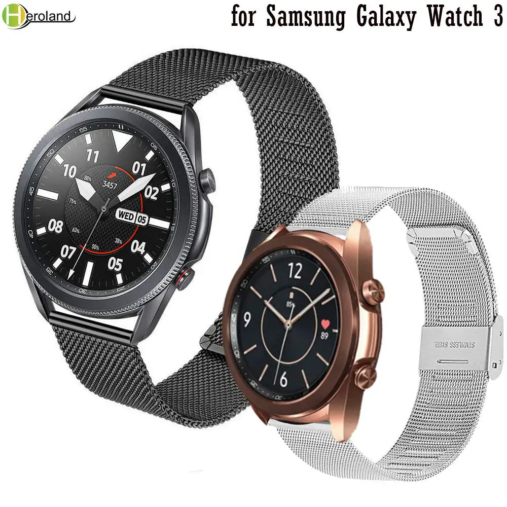 Ремешок Миланская петля из нержавеющей стали для наручных часов, магнитный браслет для Samsung Galaxy Watch 3 41 мм 45 мм, 20 мм 22 мм