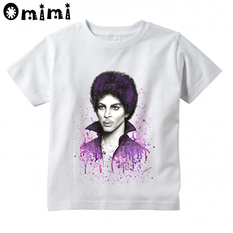 Детские фиолетовые дизайнерские топы принц дождь Повседневная футболка для мальчиков и девочек детская Ретро футболка рок-гитара Тур Роджерс Нельсон Рип белая футболка