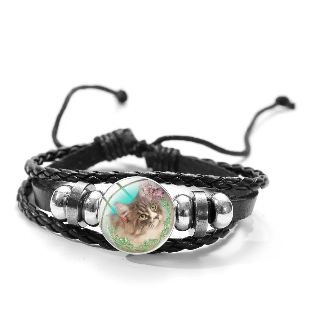 Милый, собака, кот Pet кожаный браслет с художественной фотографией кабошоны разрисованные изделия из стекла с рисунком из мультфильма с драгоценными камнями Многослойные браслеты ручной работы для любителей животных подарки