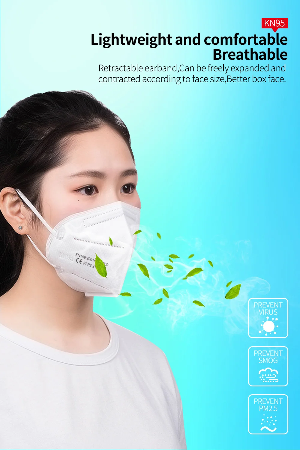 Маска для лица KN95, CE FFP2, 5 слоев, медицинские дышащие маски