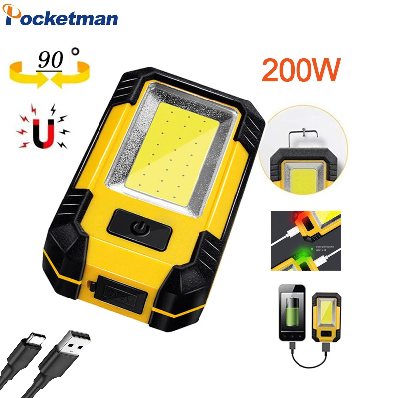 Портативный светильник для кемпинга, суперъяркий светодиодный аварийный перезаряжаемый уличный портативный фонарик COB 200 Вт с USB, фонарь для кемпинга