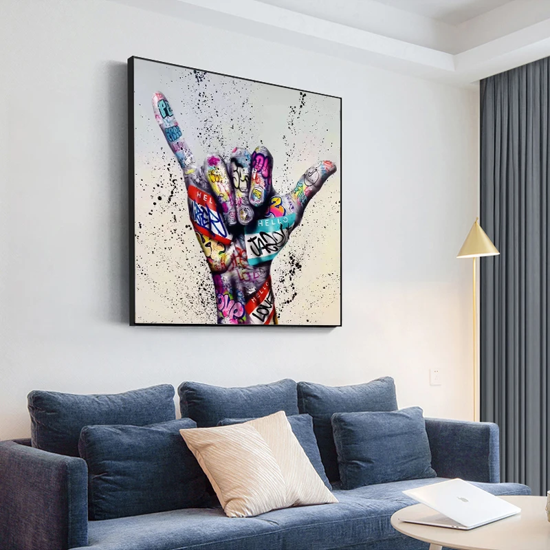 Жест граффити Художественная Картина на холсте искусство и принты уличная Настенная картина для гостиной домашний декор