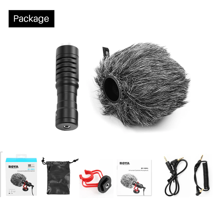 BY-MM1 поставляется в компактном размере и облегченном алюминиевом корпусе, это не будет тяжелой нагрузкой во время съемки. Подключи и играй дизайн, не нужно беспокоиться о состоянии батареи. В комплект входит Противоударное Крепление, которое эффективно снижает нежелательные вибрации, кабель и шум при обращении. Также включает пушистый ветрозащитный щит, который специально используется для минимизации ветра и шума окружающей среды для наружной записи, убедитесь, что звук кристально чистый.